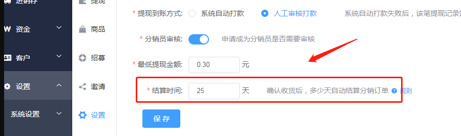 6.当设置好一级分销佣金比例发生改变后,之前所获得的佣金将不会更改,但以后获得的佣金按设置好的比例进行计算,对应二级分销佣金比例若发生改变也同一级分销一个逻辑,二级分销佣金比例取值范围(0.01%~50%)