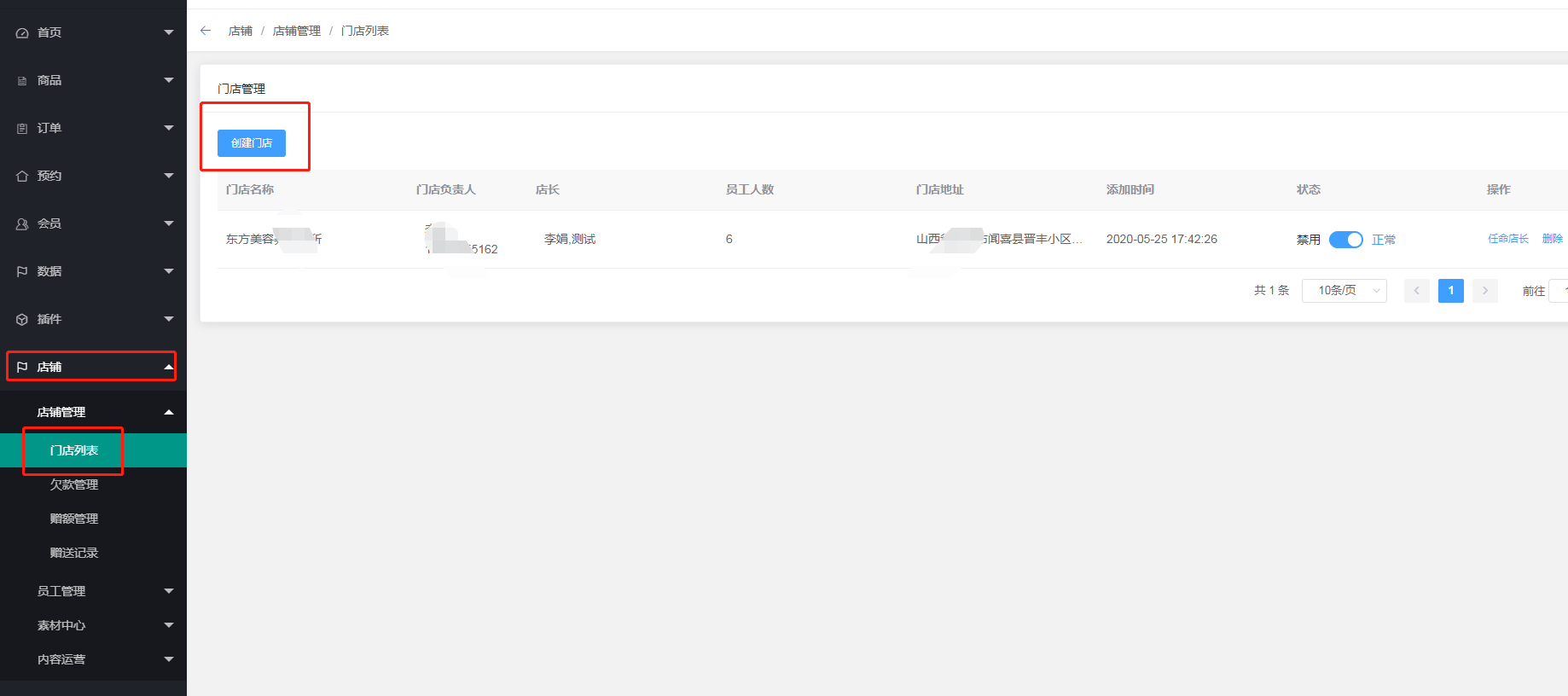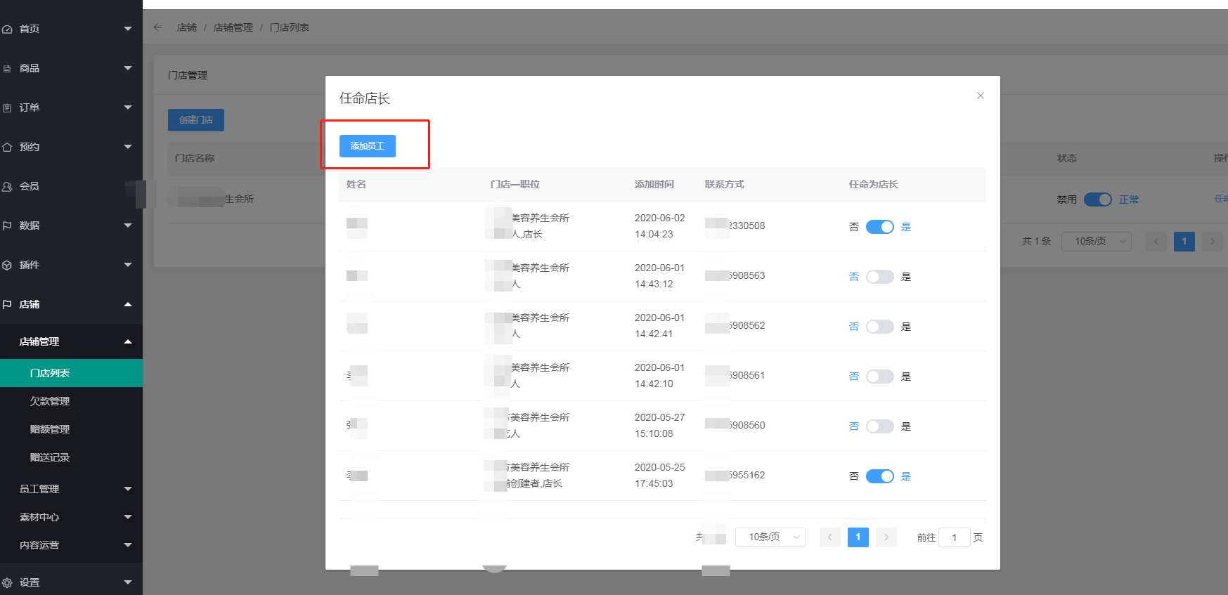 2、添加完成之后进行任命本店的店长,并且开启店长的状态