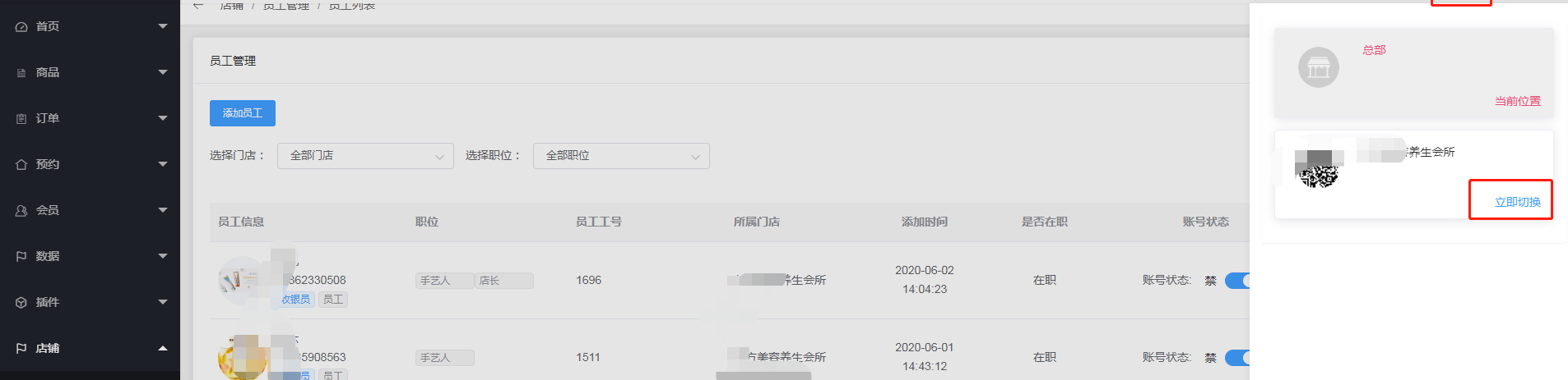 - 1.总部添加门店以及员工