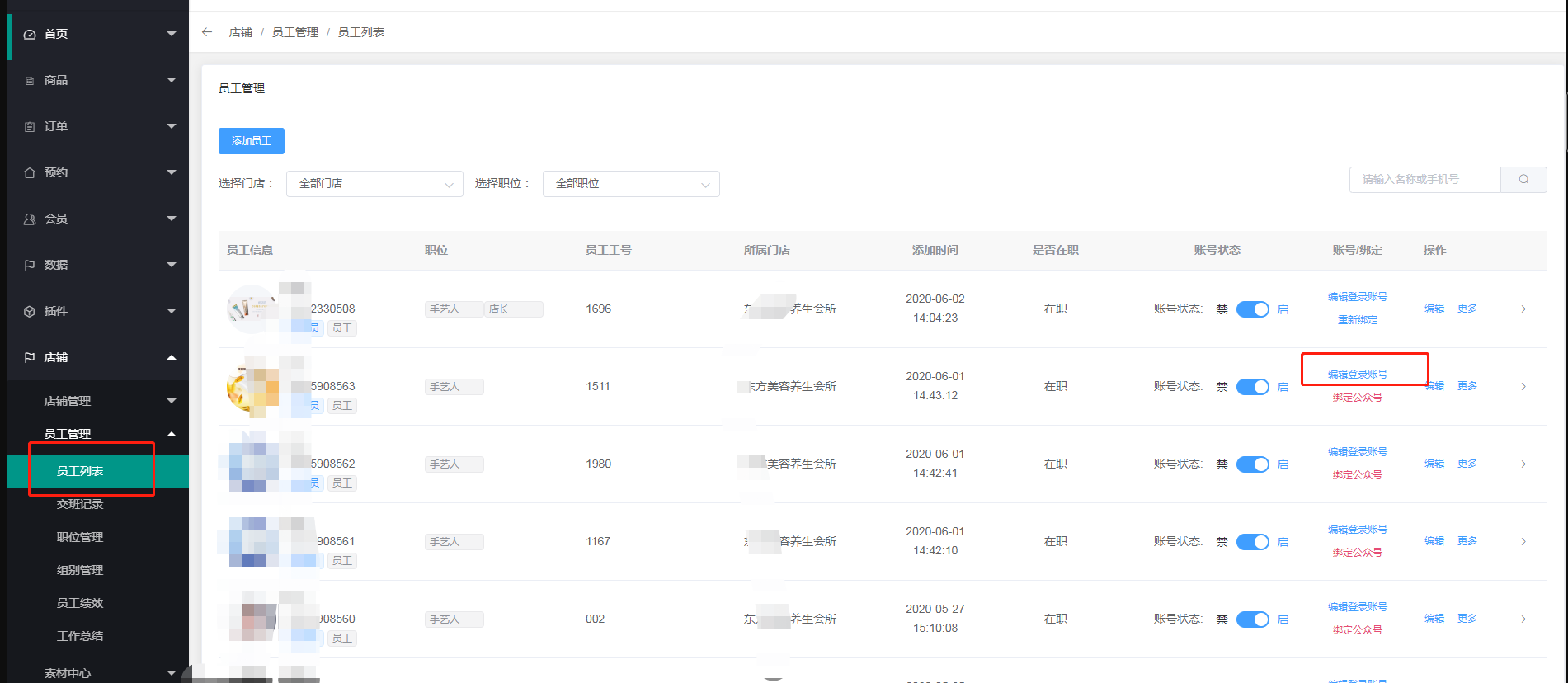 如果是店长,那么这个员工的账号则可登录店长后台以及小助手上面店长账号登录进去管理店内信息