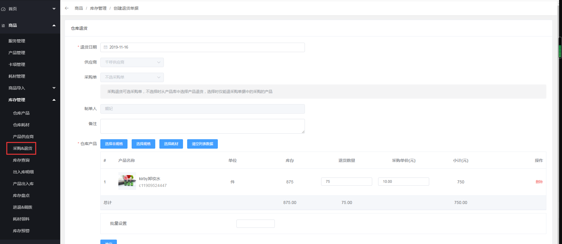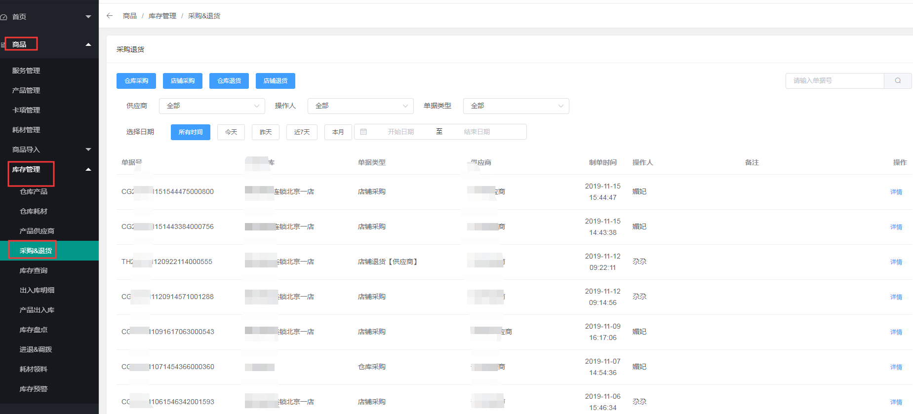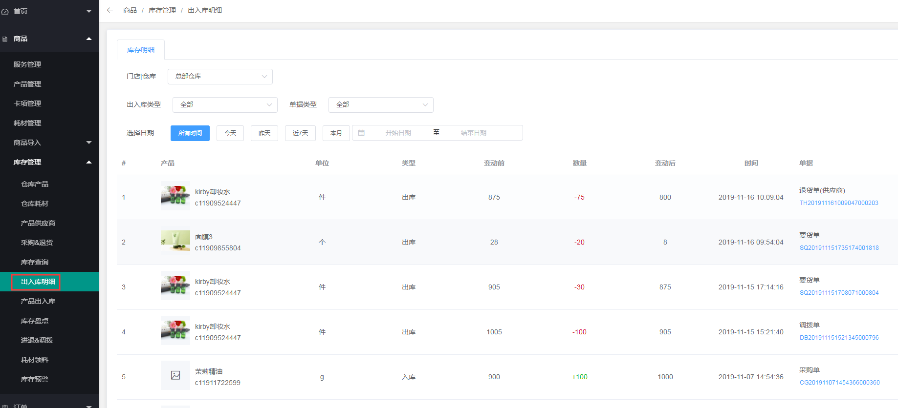 点击商品---库存管理---出入库明细 (查看出库的纪录)