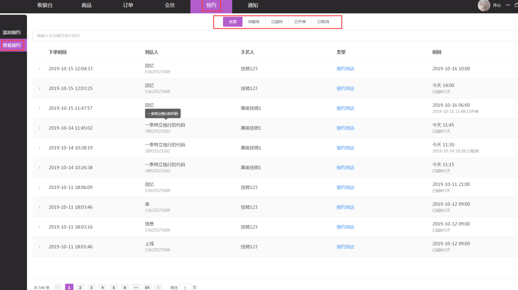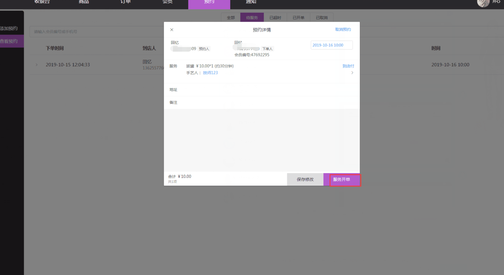 3、预约开单,点击预约--查看预约--待服务