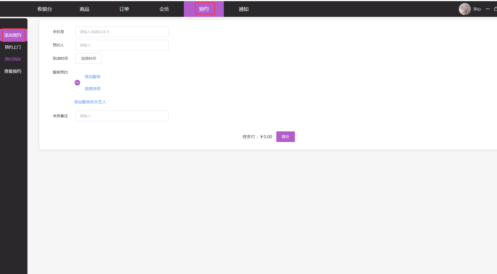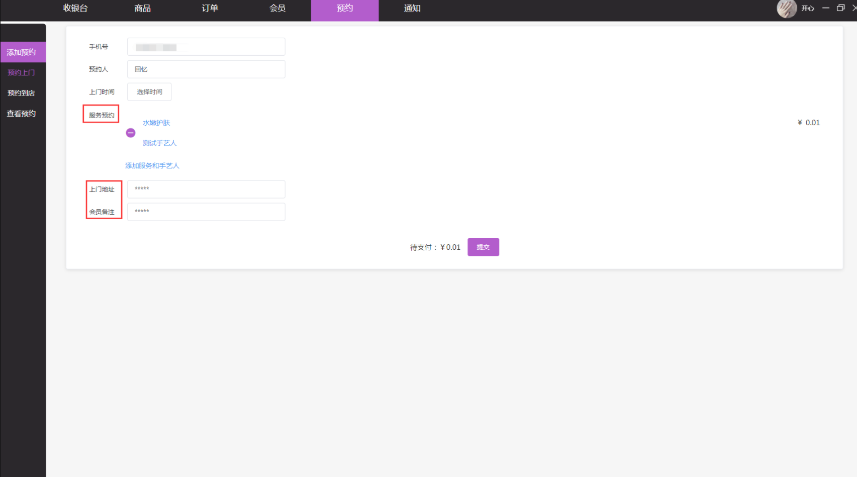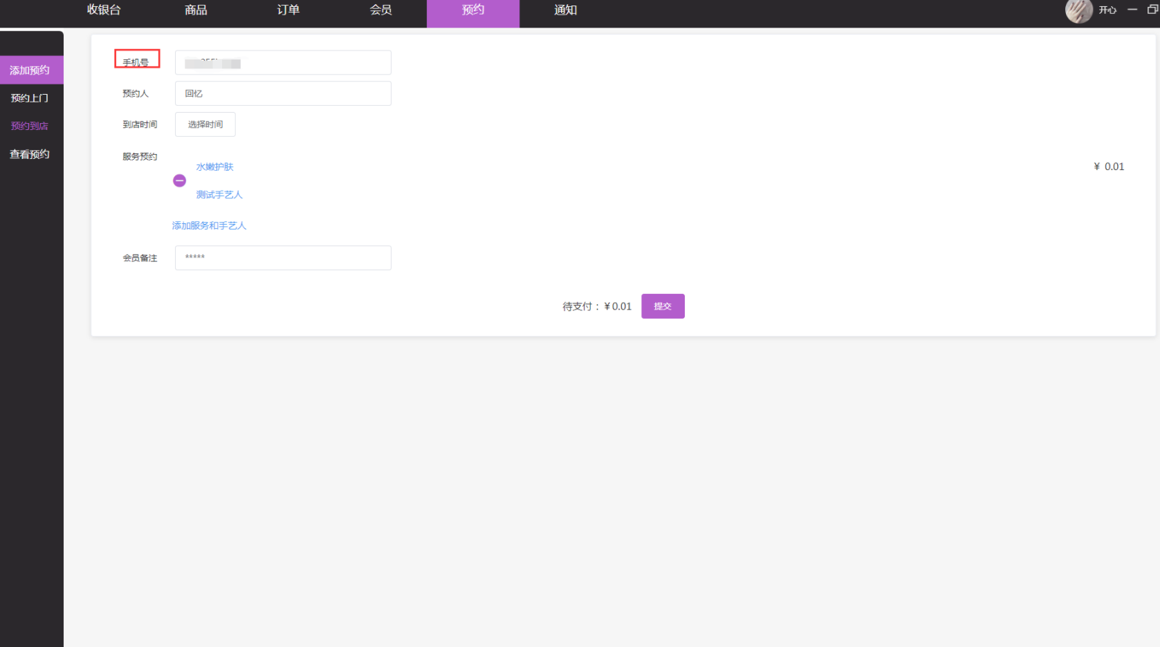 - 3.3收银端预约