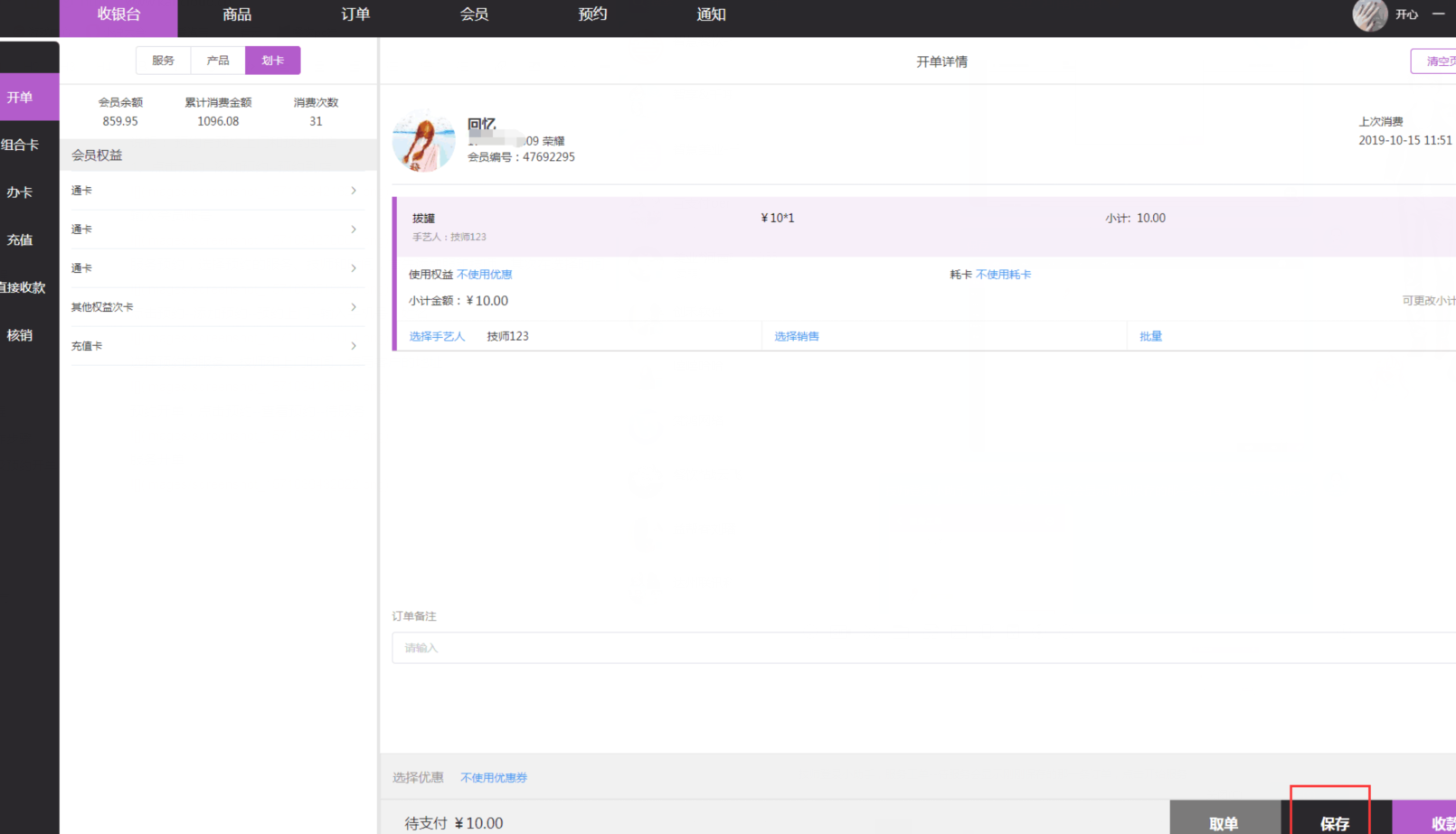 服务开单--保存