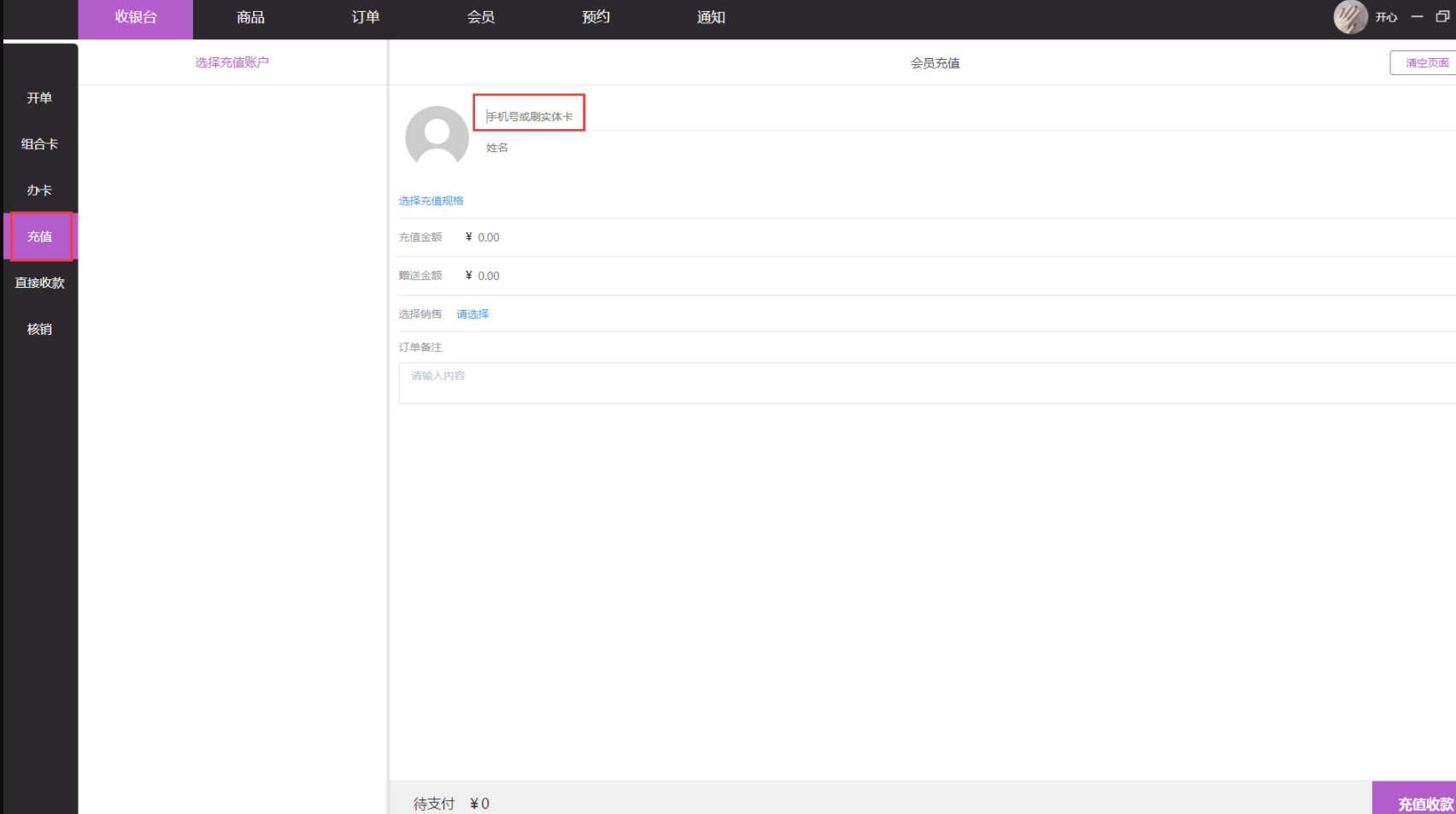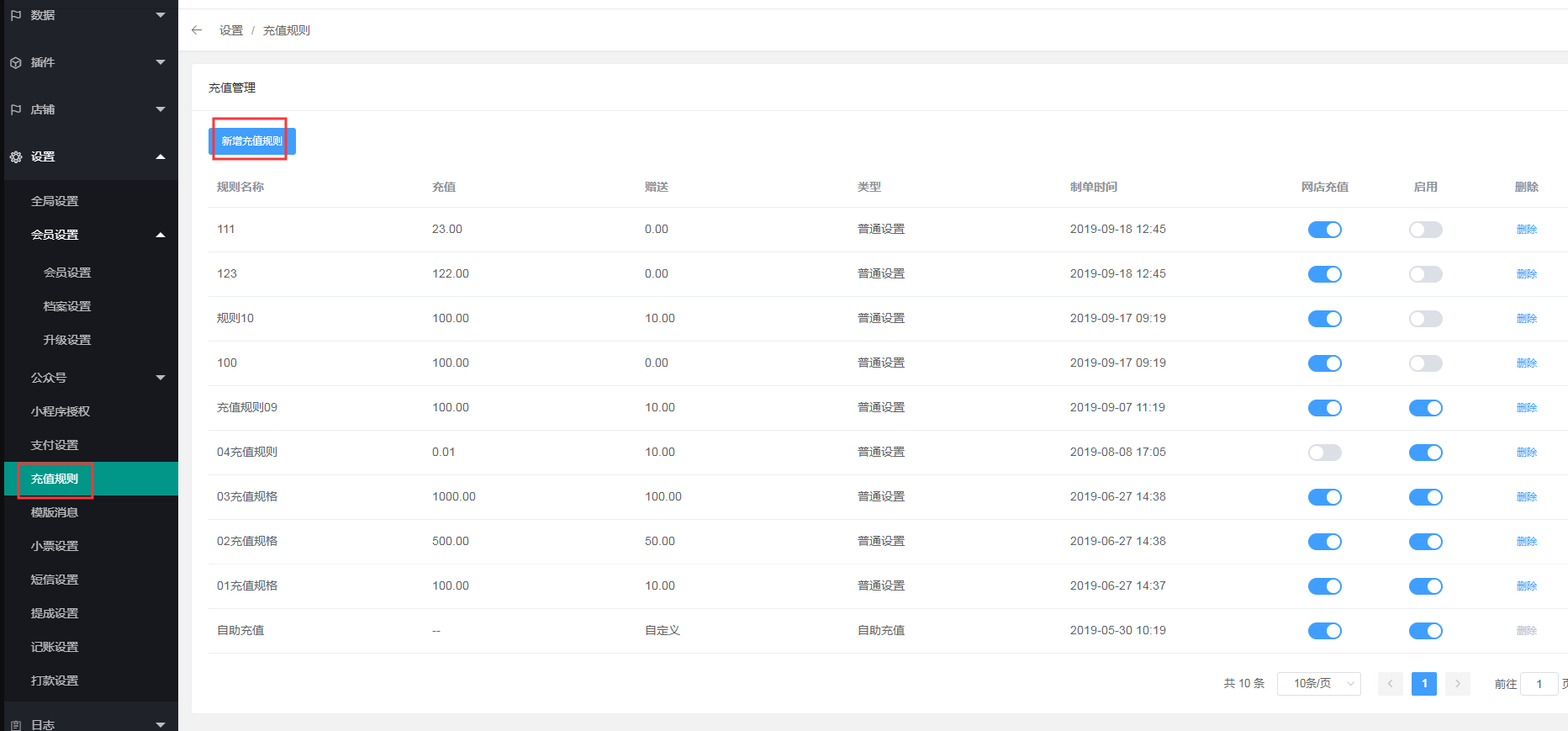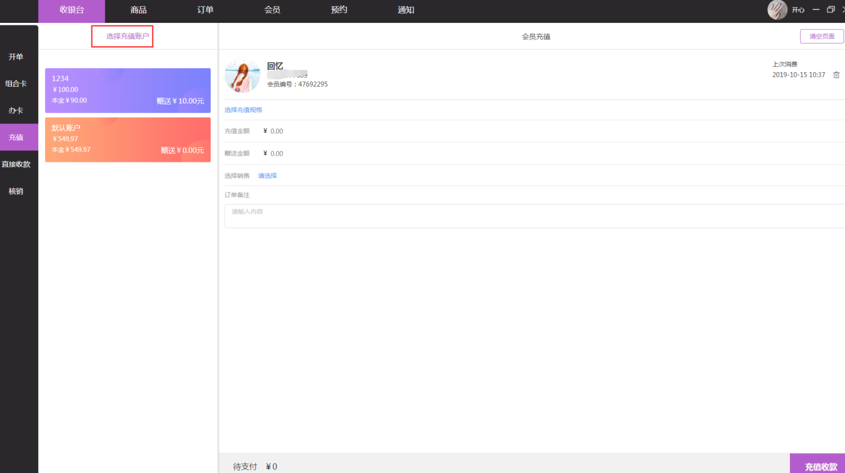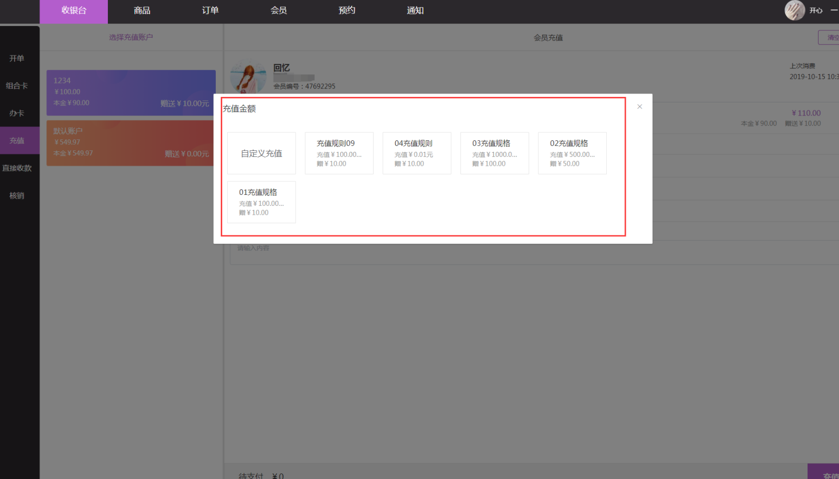 3、选择充值规则,充值规则在总部--设置--充值规则--新增充值规则