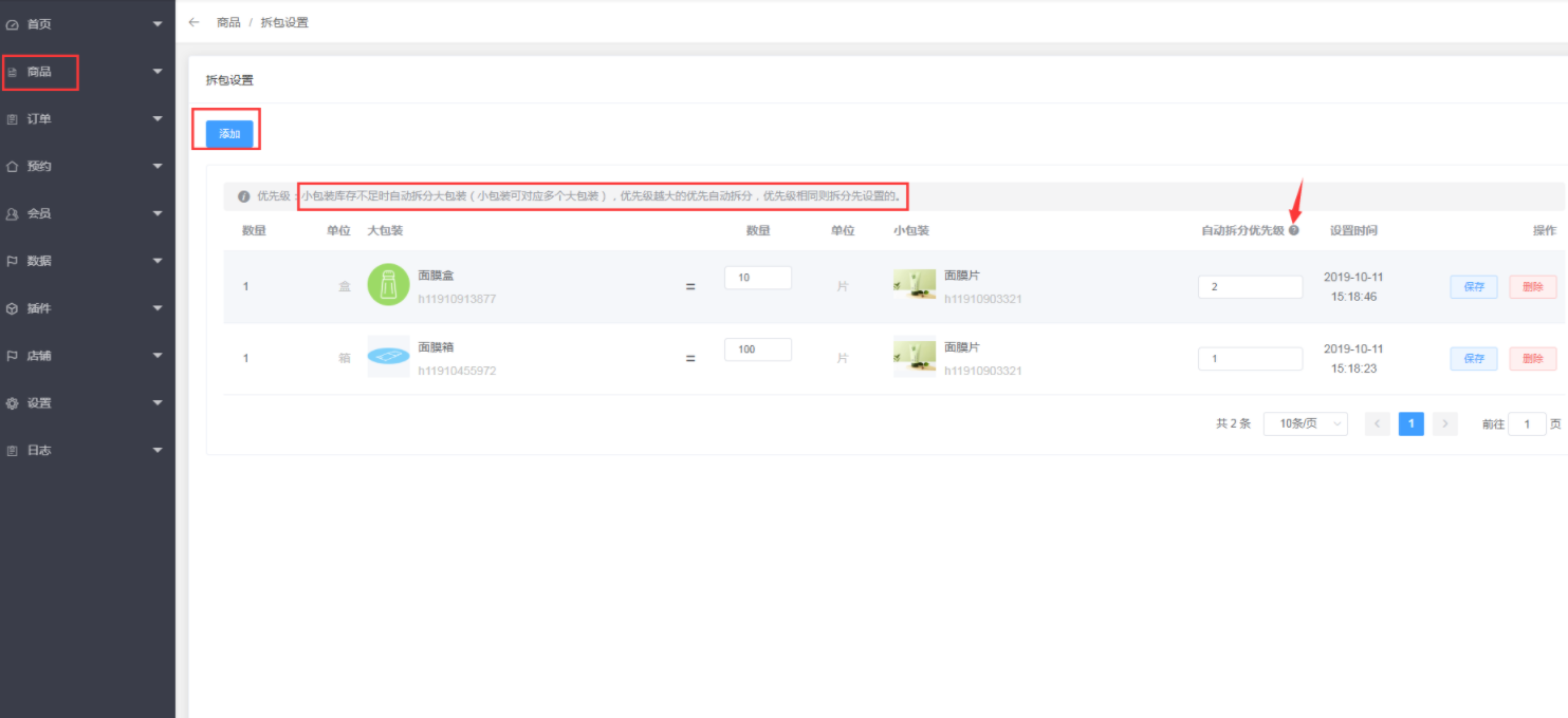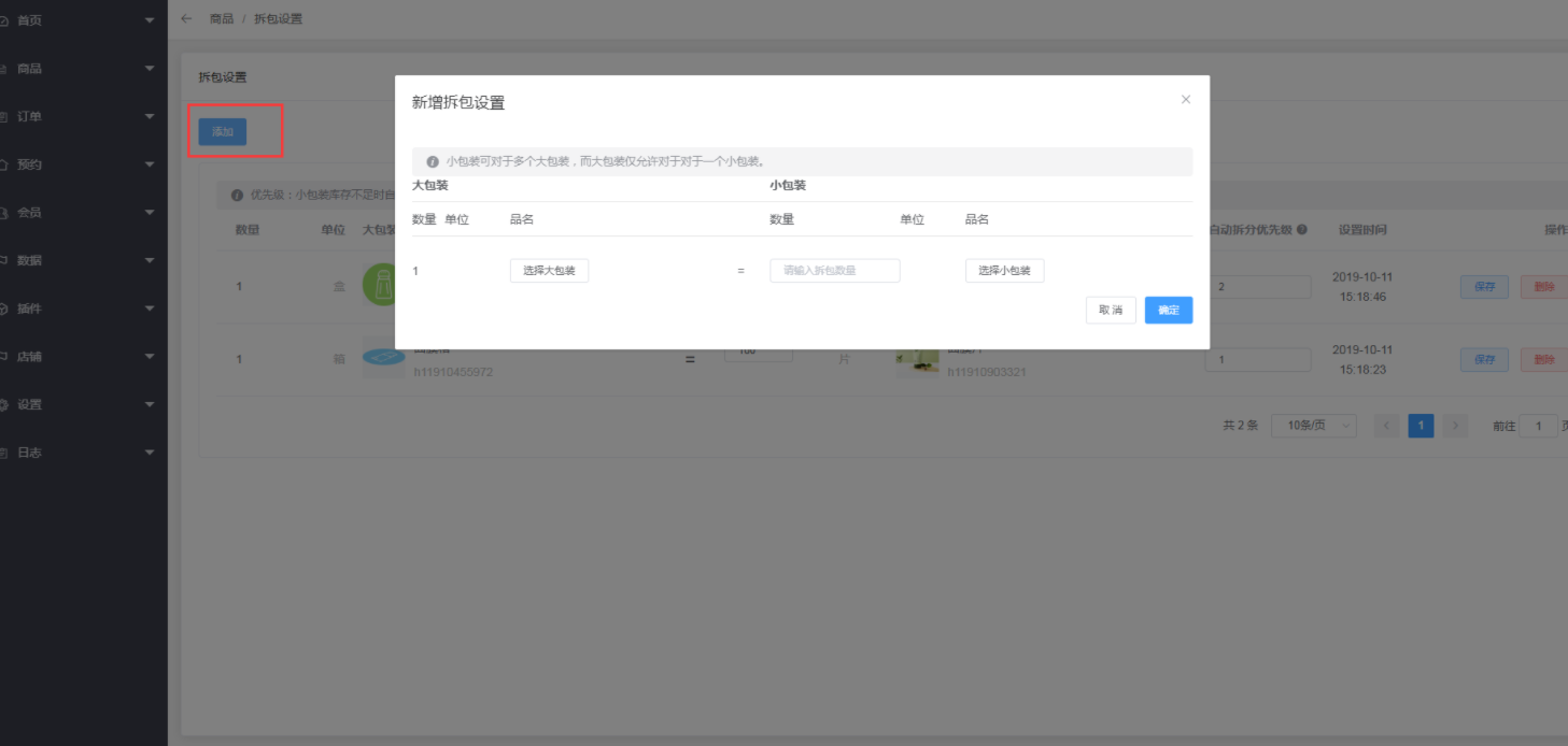 3、耗材拆分。点击商品--耗材管理--拆分设置