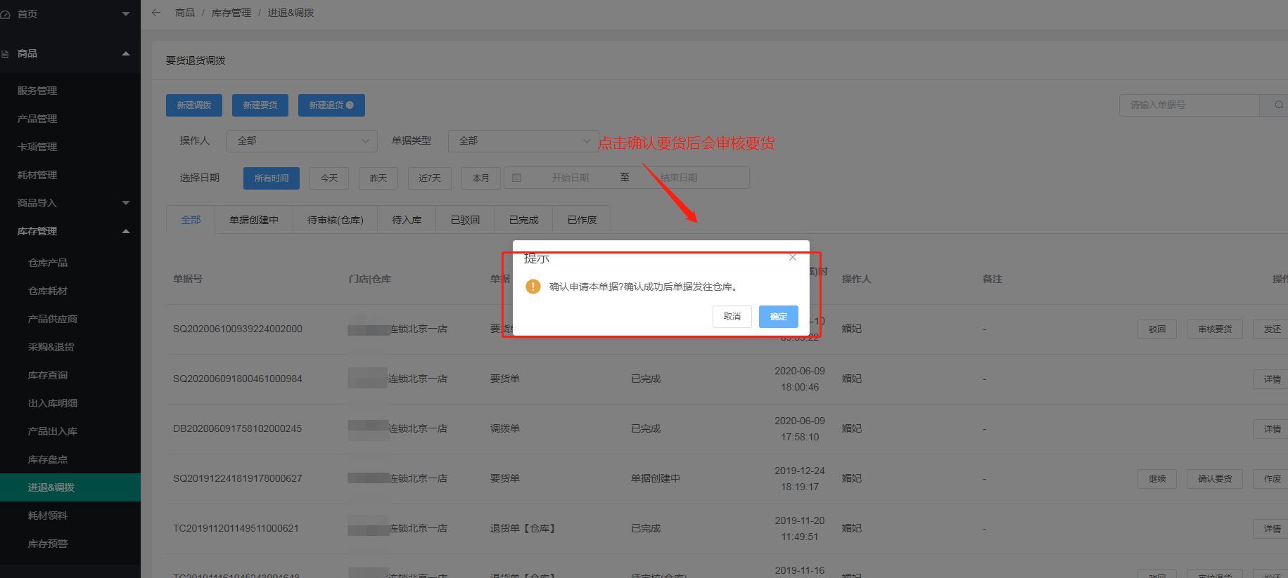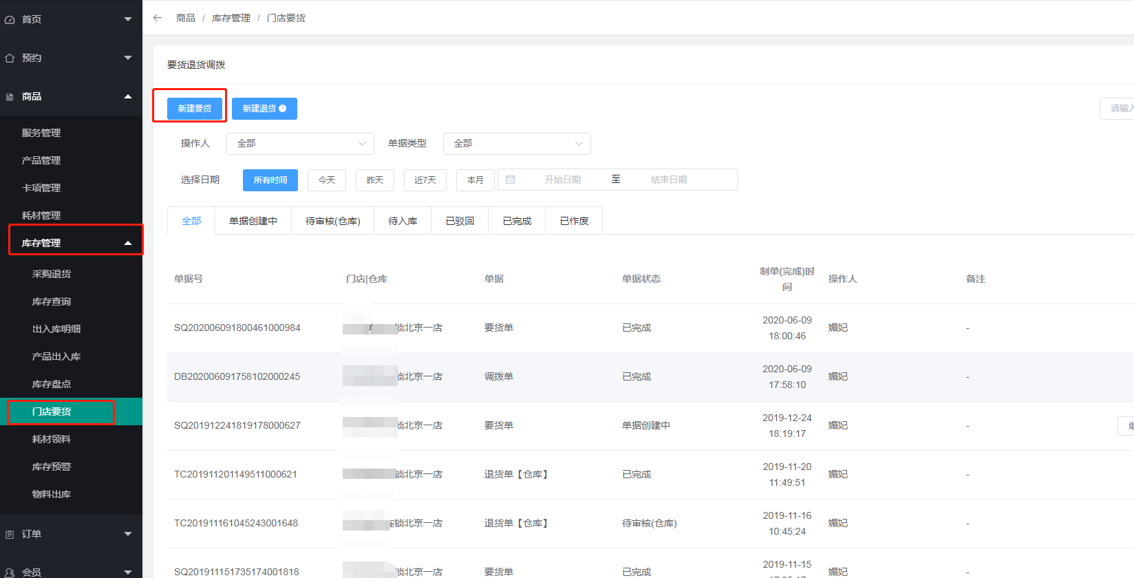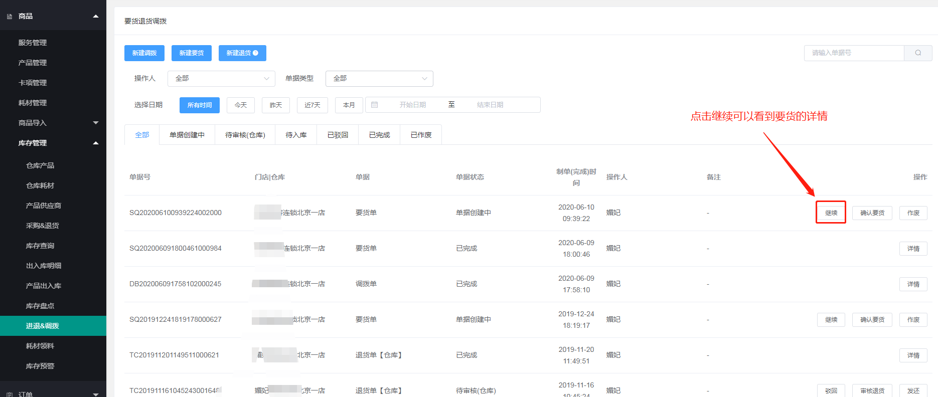 三、总部后台可以看见门店的要货记录