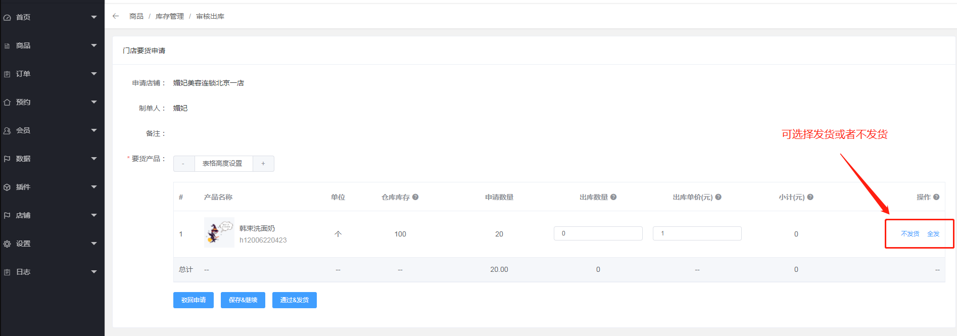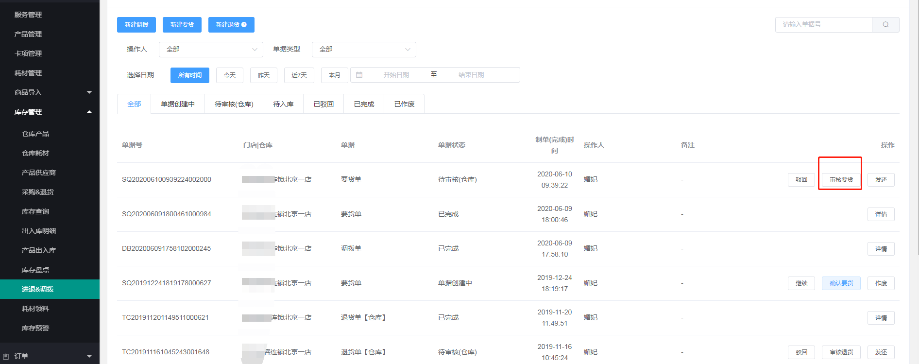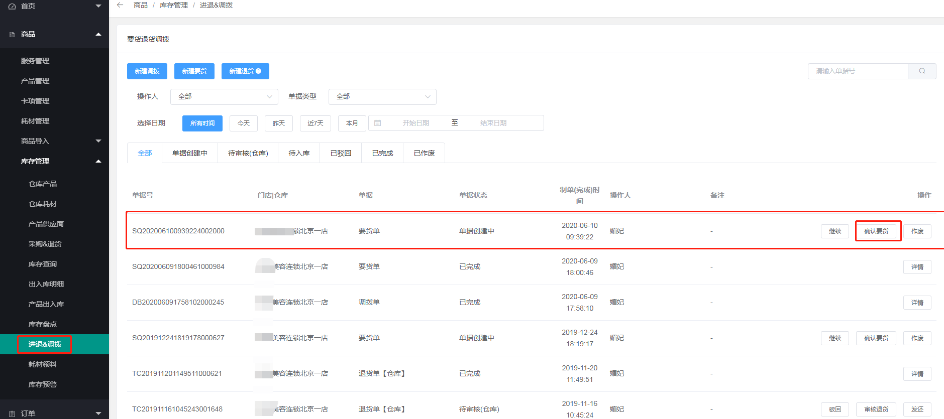 三、总部后台可以看见门店的要货记录