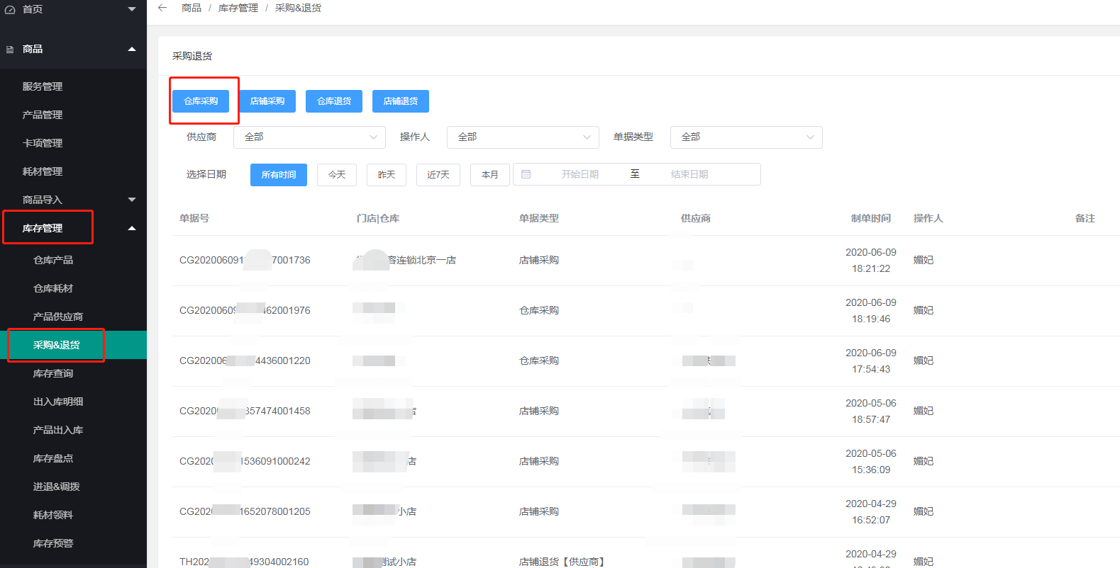 - 3.2总部仓库给门店采购