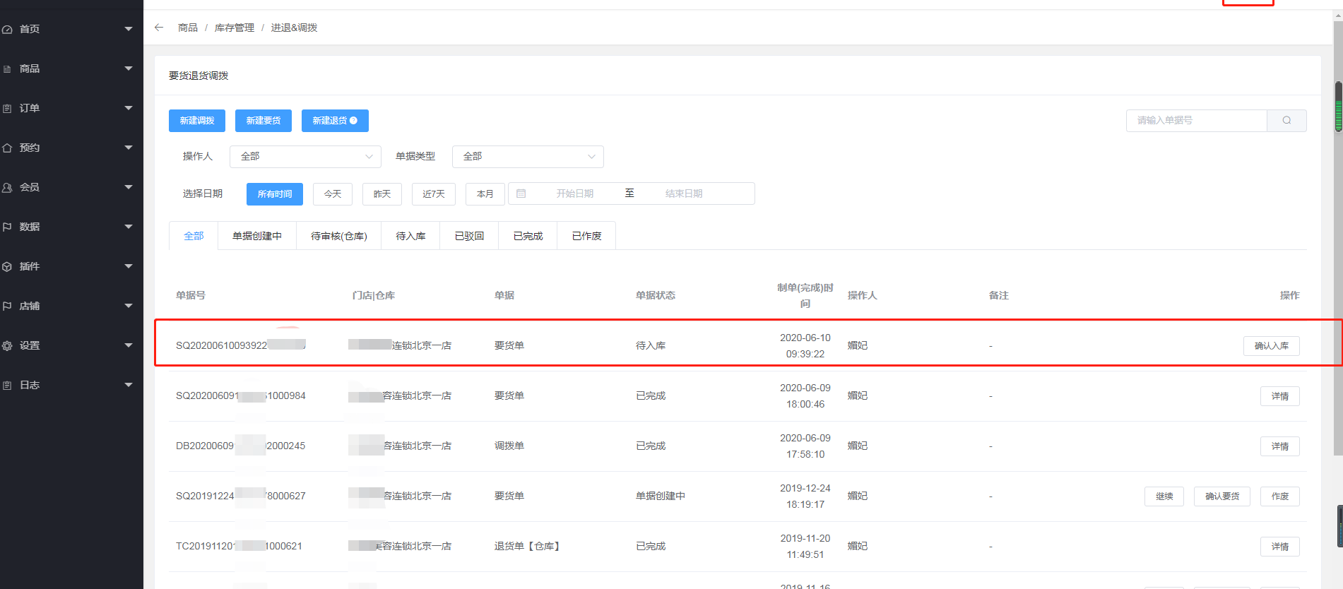 四、通过发货后总部可以帮门店入库,门店也可以自己入库