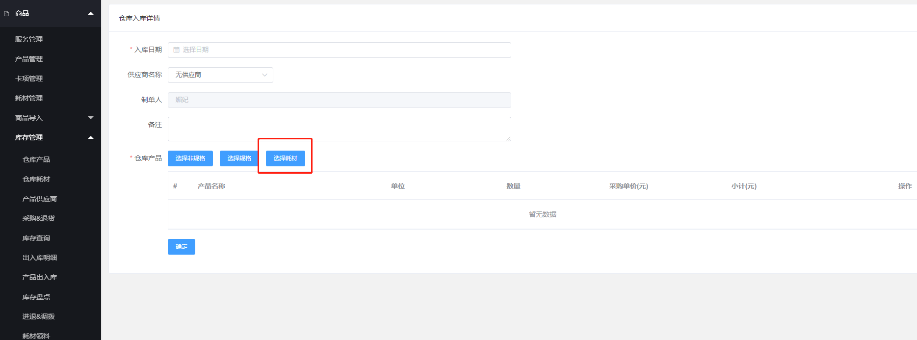 - 5.6耗材手动领料