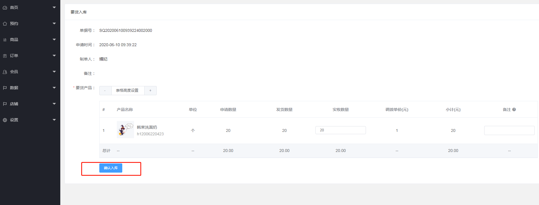 2.点击确认要货
