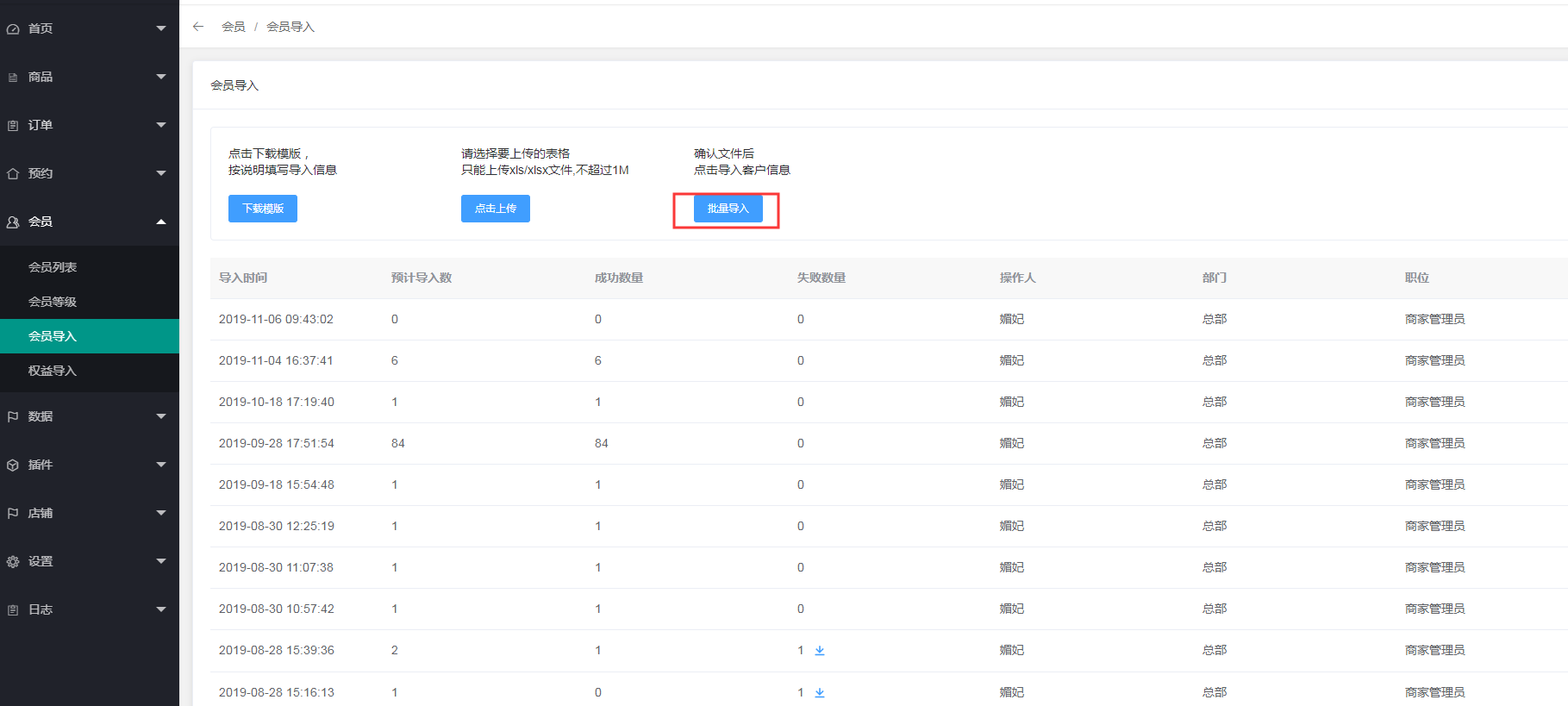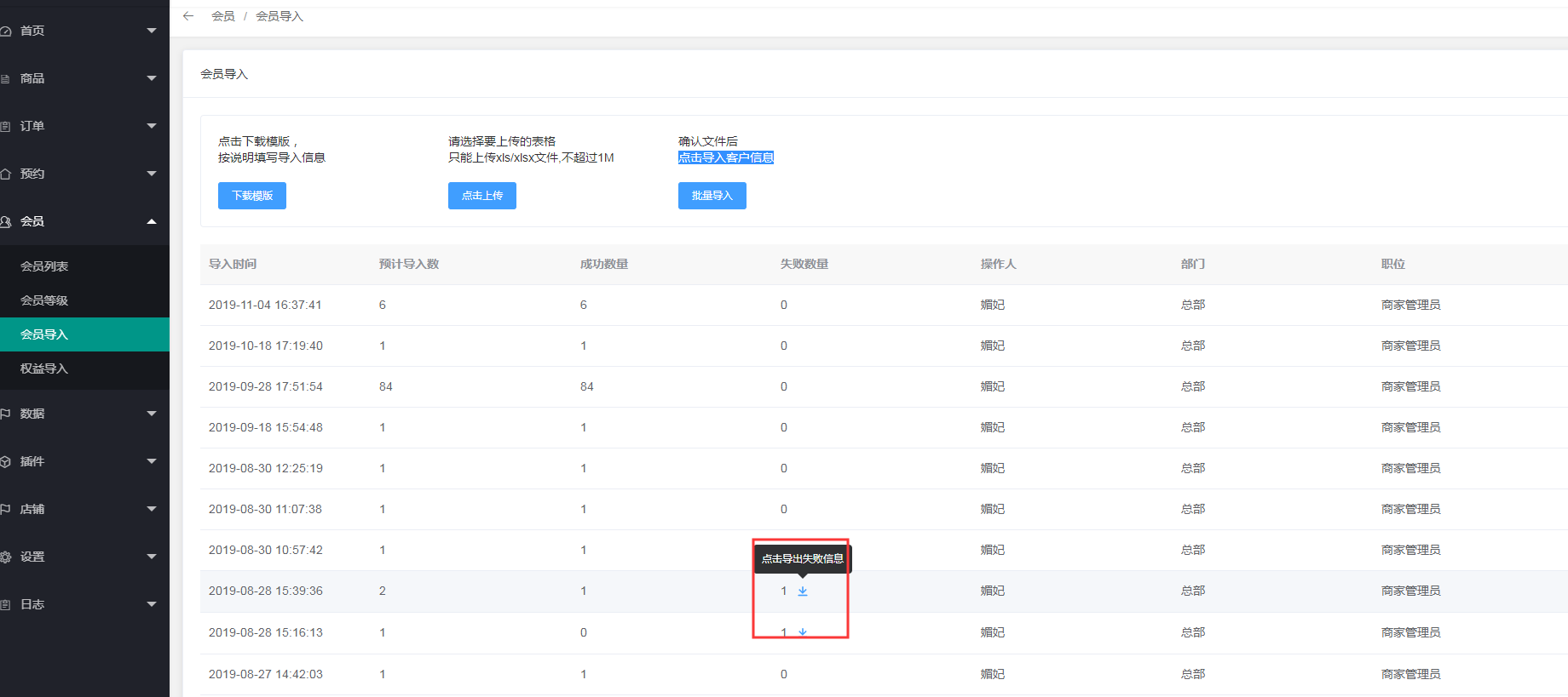 3、会员导入失败点击查看导入失败的原因