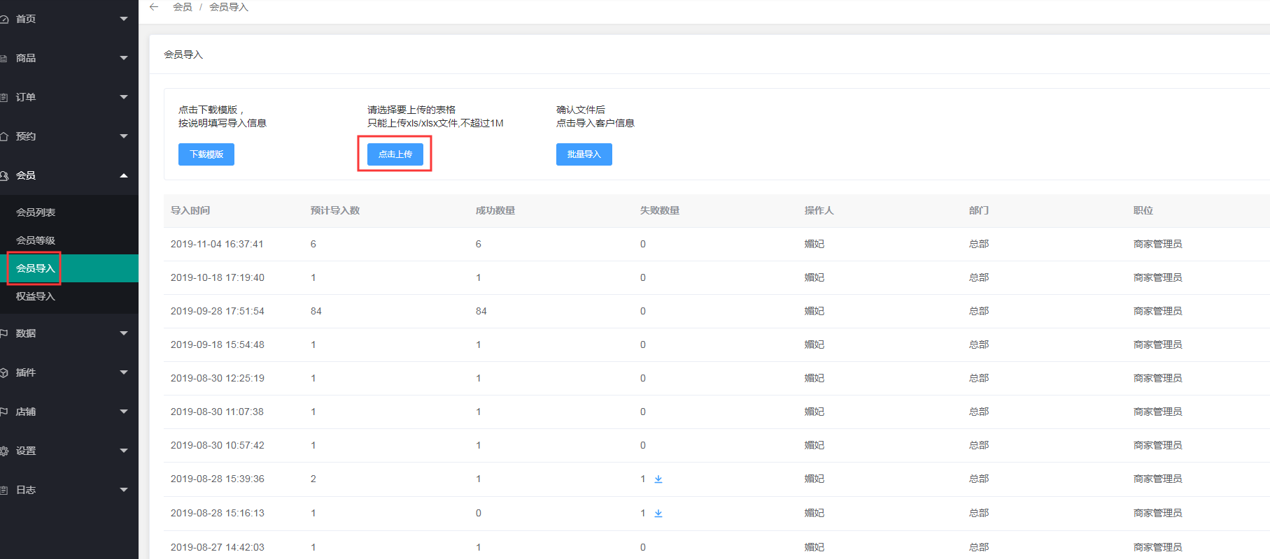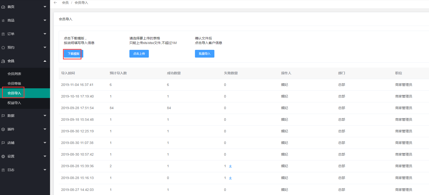 1、点击会员---会员导入---下载导入模板