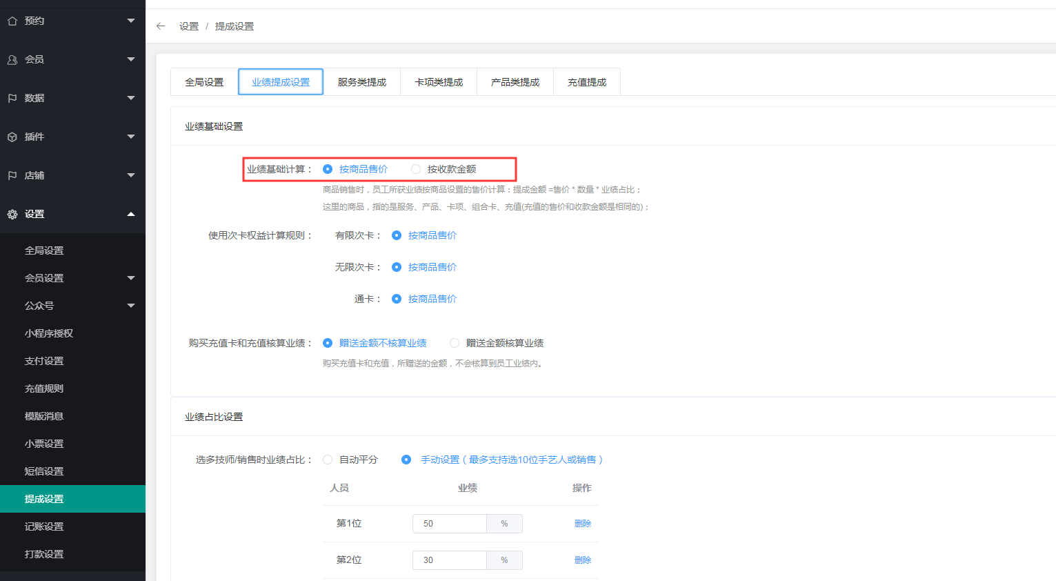 # 业绩提成设置