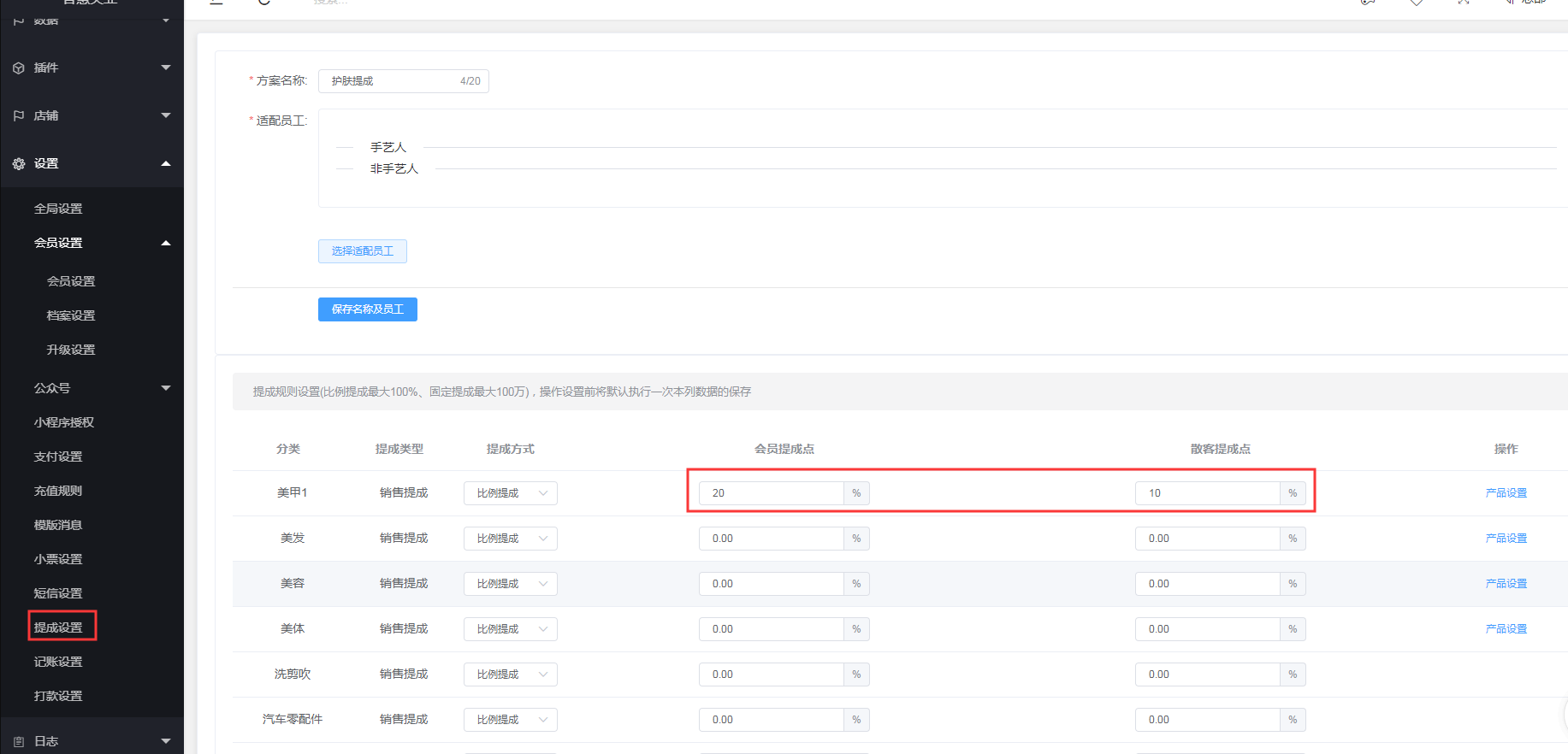提成点的设置,提成方案一定要保存才能生效。