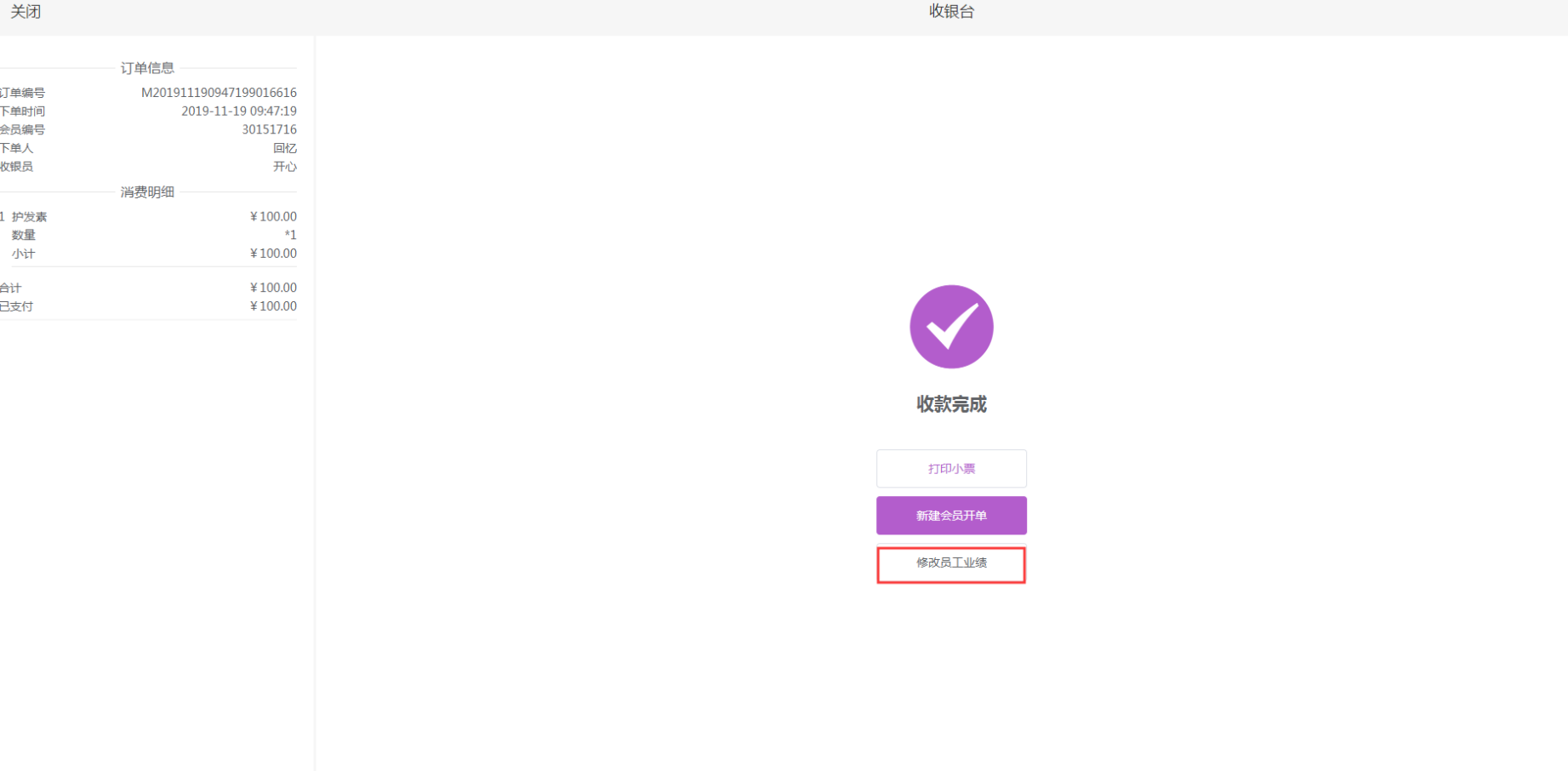 开单的时候可以选择技师和销售,技师可以勾选“点客”,技师和销售都可以多选,最多可各选10个,结算之后会按照设置好的提成方案进行业绩和提成的计算(多选的情况下会均分业绩和提成,可在收款完成之后点击“修改员工业绩”进行业绩和提成的手动调整)