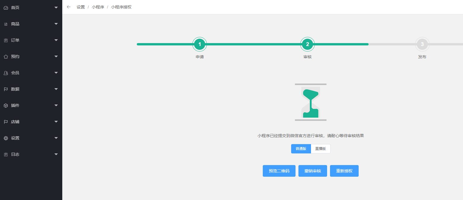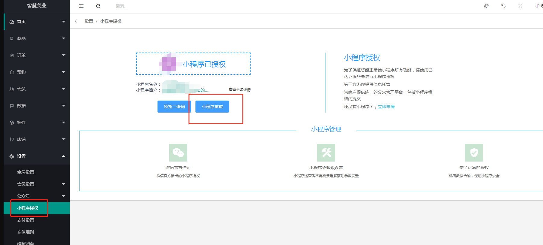 **1\. 美业的系统小程序提审直接在商家后台即可完成,无需登录进入微信官方小程序后台提审发布