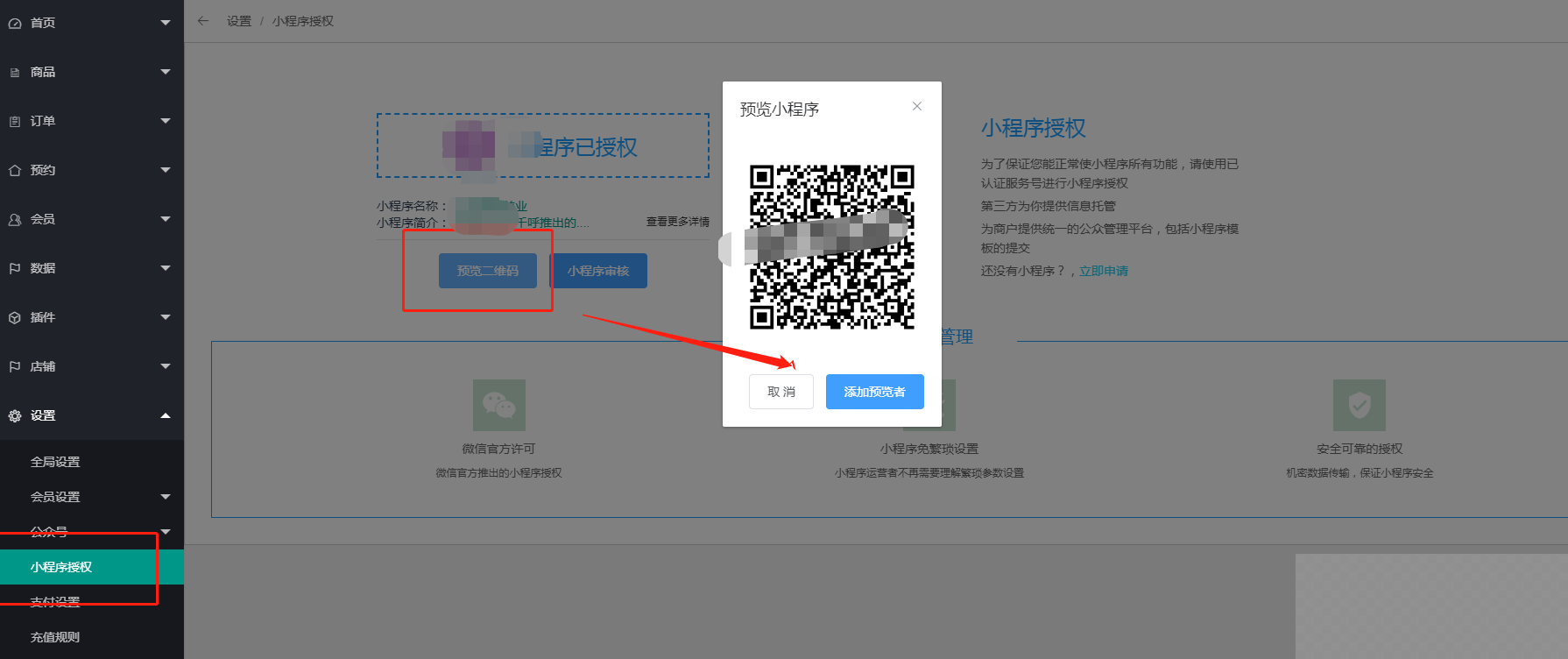 2、授权完,点击二维码预览