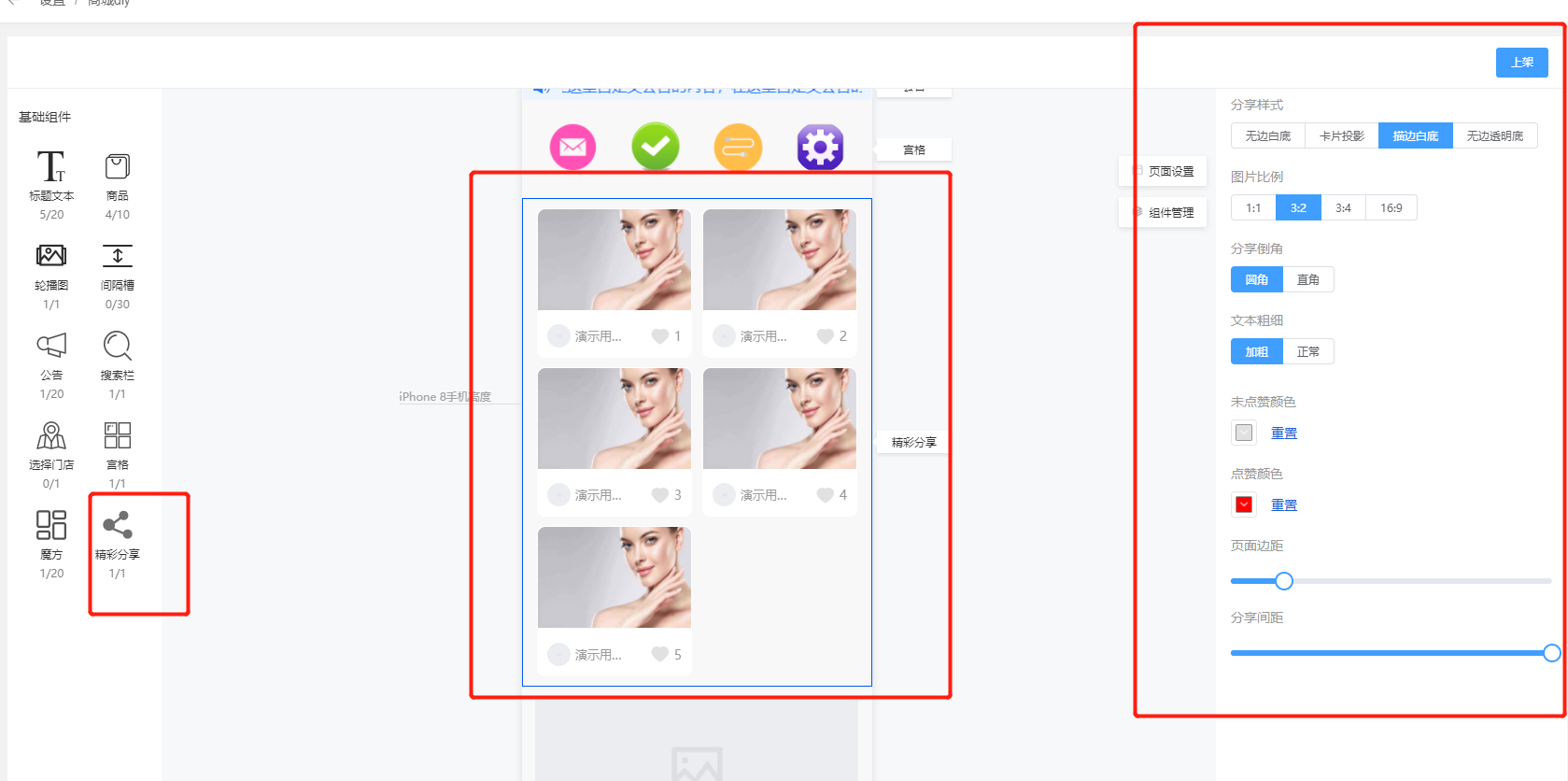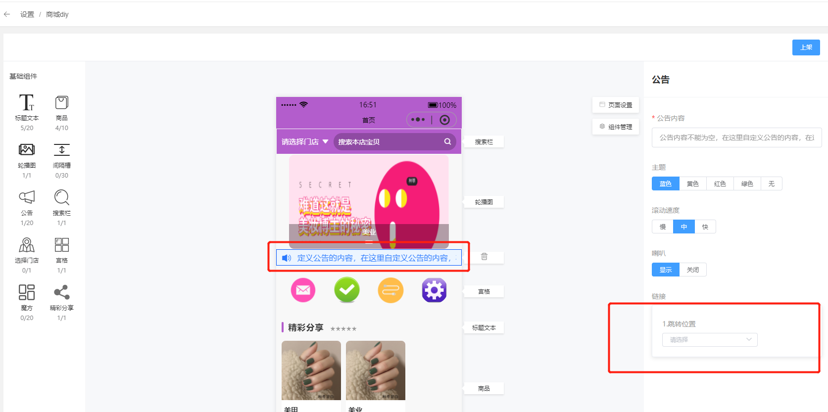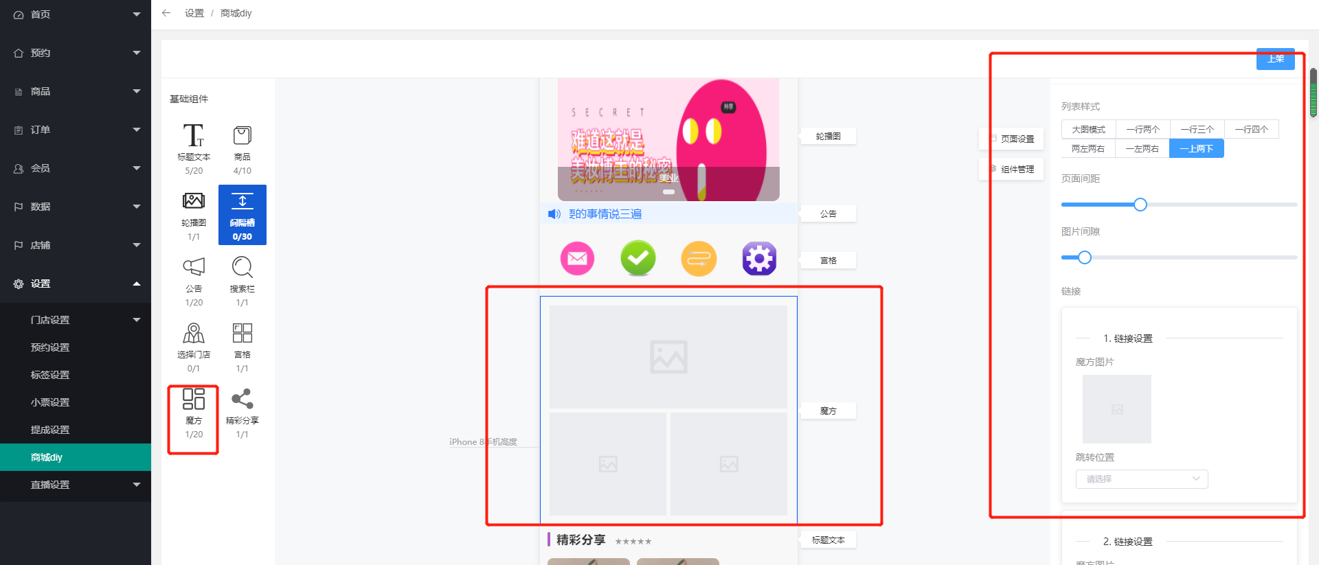 六、魔方,可以选择列表样式,调整页面间距和间隙,设置跳转链接