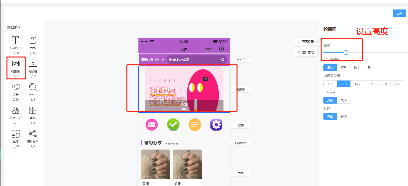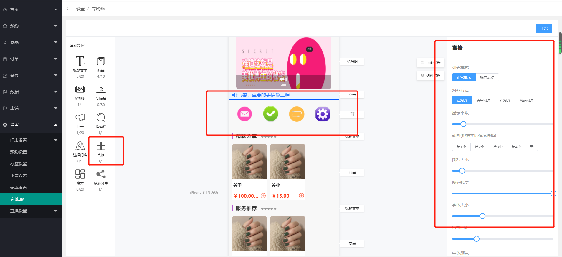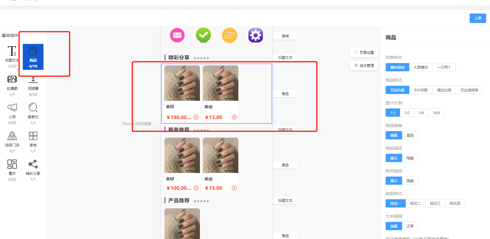六、魔方,可以选择列表样式,调整页面间距和间隙,设置跳转链接
