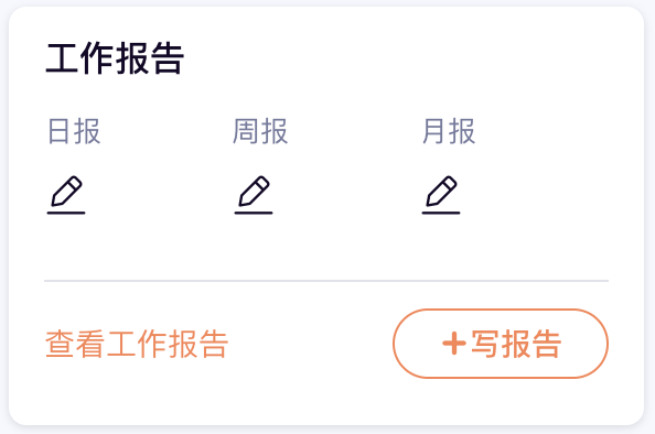【写报告】卡片为用户提供快捷写报告入口,查看提交报告入口,查看报告汇总情况入口