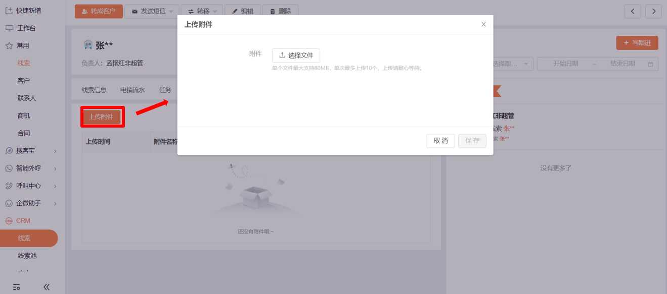 可添加任务:可添加附件:可查看操作日志,如果误操作了可通过操作日志找到原来的信息: