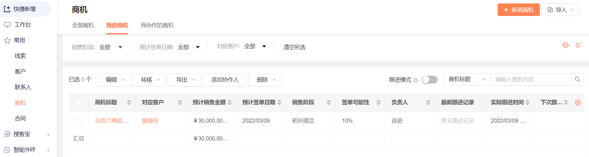 - 添加商机