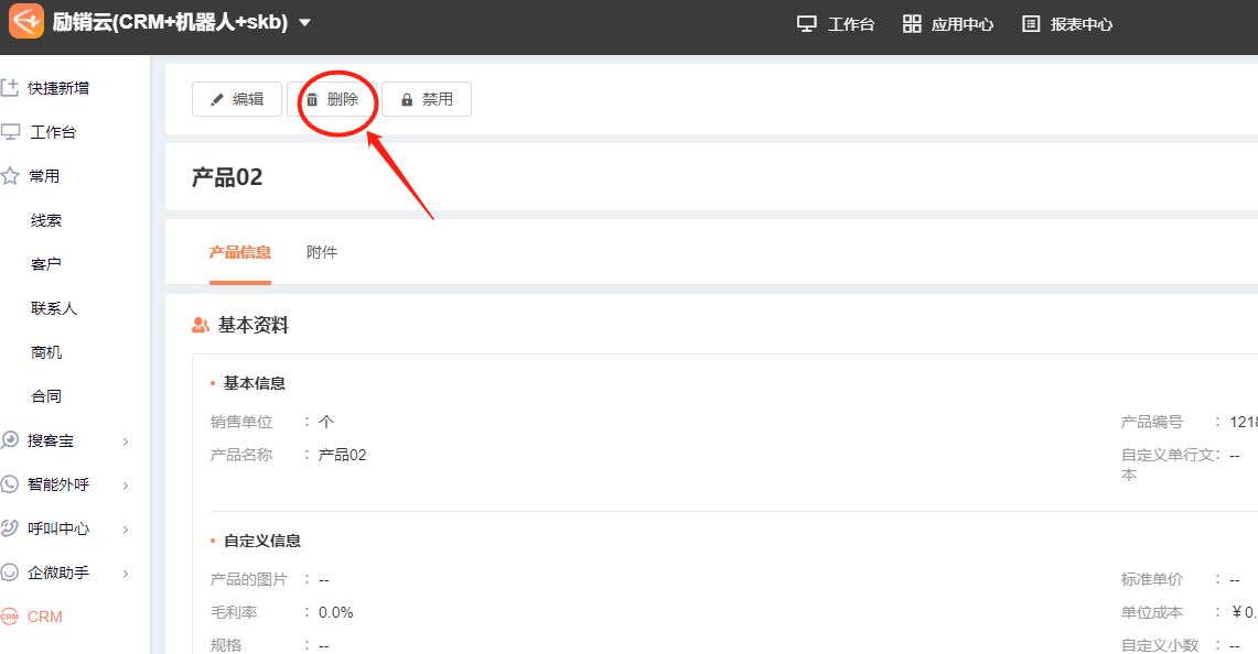 拥有“删除产品”权限的用户,可以进行删除产品的操作。