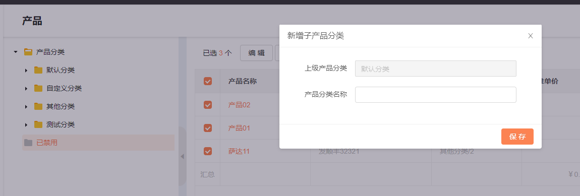 拥有“产品分类设置”权限的用户,可以进行新增、编辑、删除产品分类的操作。