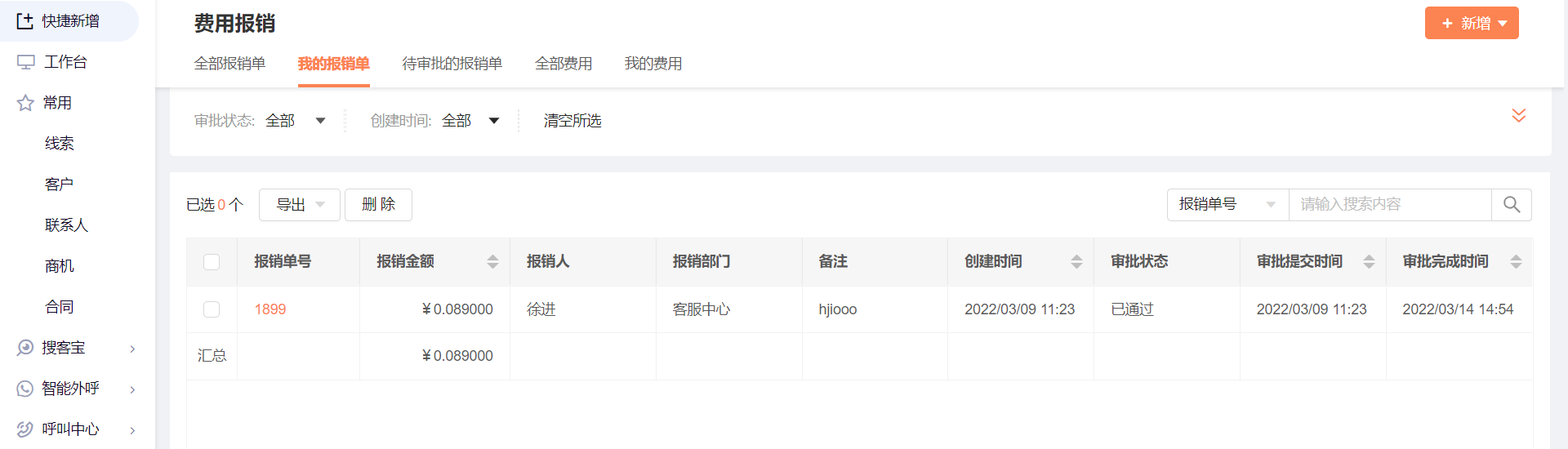 - 新增报销单