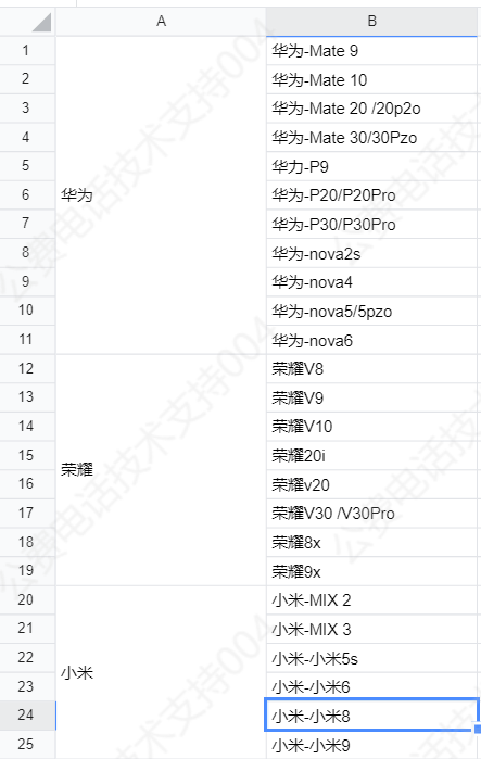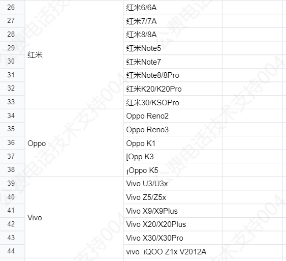 (未包含在以下列表中的机型,暂不确保双向录音可用。如有需要支持其他机型,请联系客服提工单,提交手机品牌,设备型号,系统版本及录音文件的存储路径,供开发人员研究,做后续适配。)