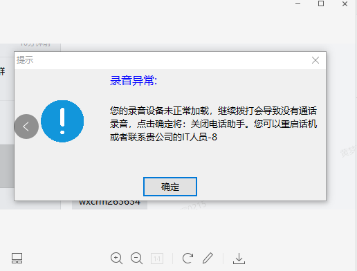 ## 电话助手弹窗提示录音异常,弹窗提示错误码“-8”