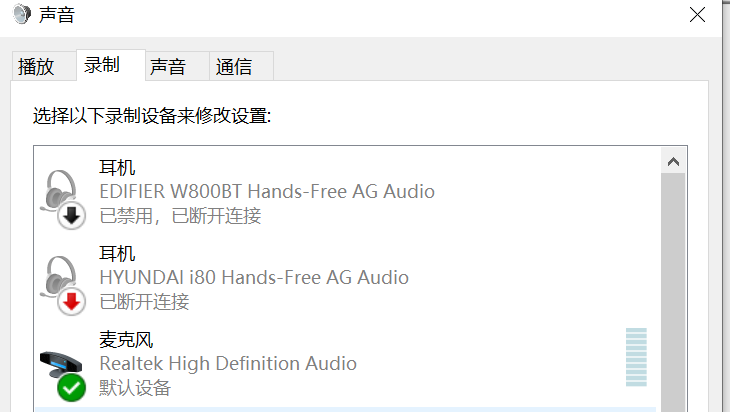 测试:通话中,麦克风会有绿色音量波动,表示有音频输入进电脑,即为正常