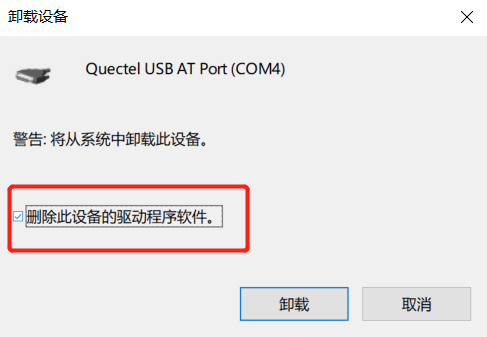 无法卸载:这种情况客户不会遇到,一般是开发人员调用端口的时候,端口被占用无法卸载,比如 sscom 调用 AT 端口,DM 口抓 log 等,停止调用即可删除