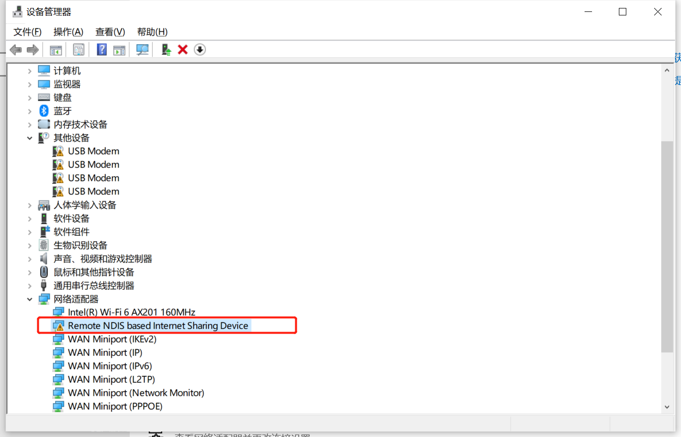 可以在设备管理器-网络适配器内找到NDIS以太网然后右键卸载。