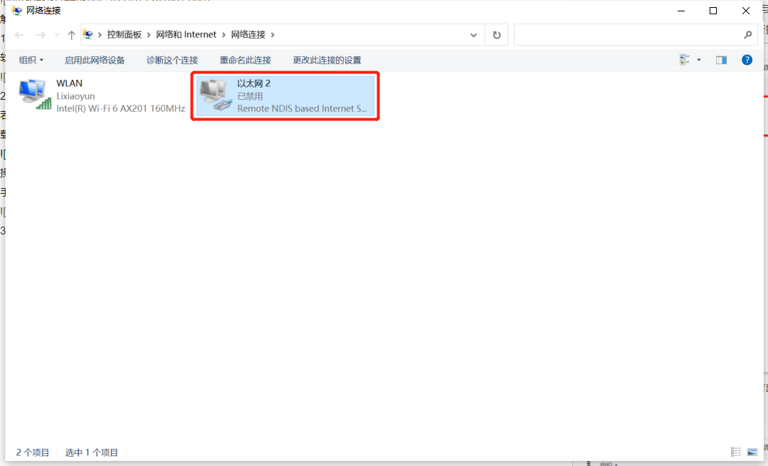 **3、网络连接内有NDIS以太网,但是显示被禁用。**