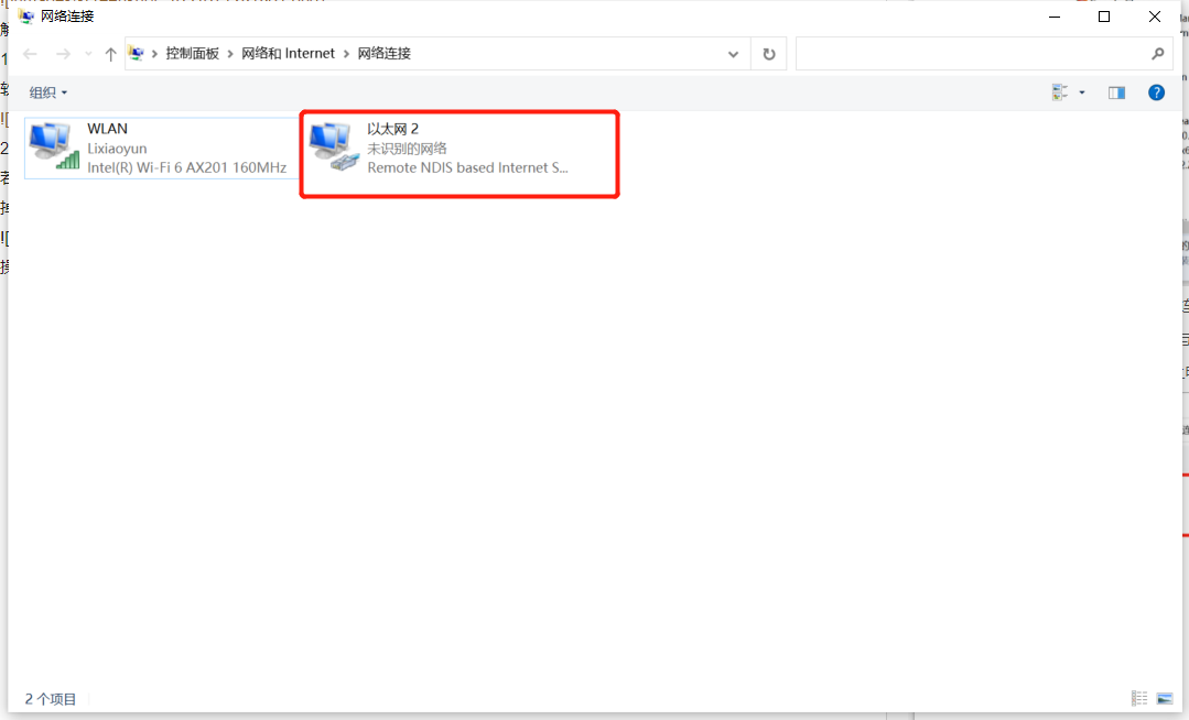 **2、电脑控制面板-网络和Internet-网络连接查看是否有NDIS标识的本地以太网。**