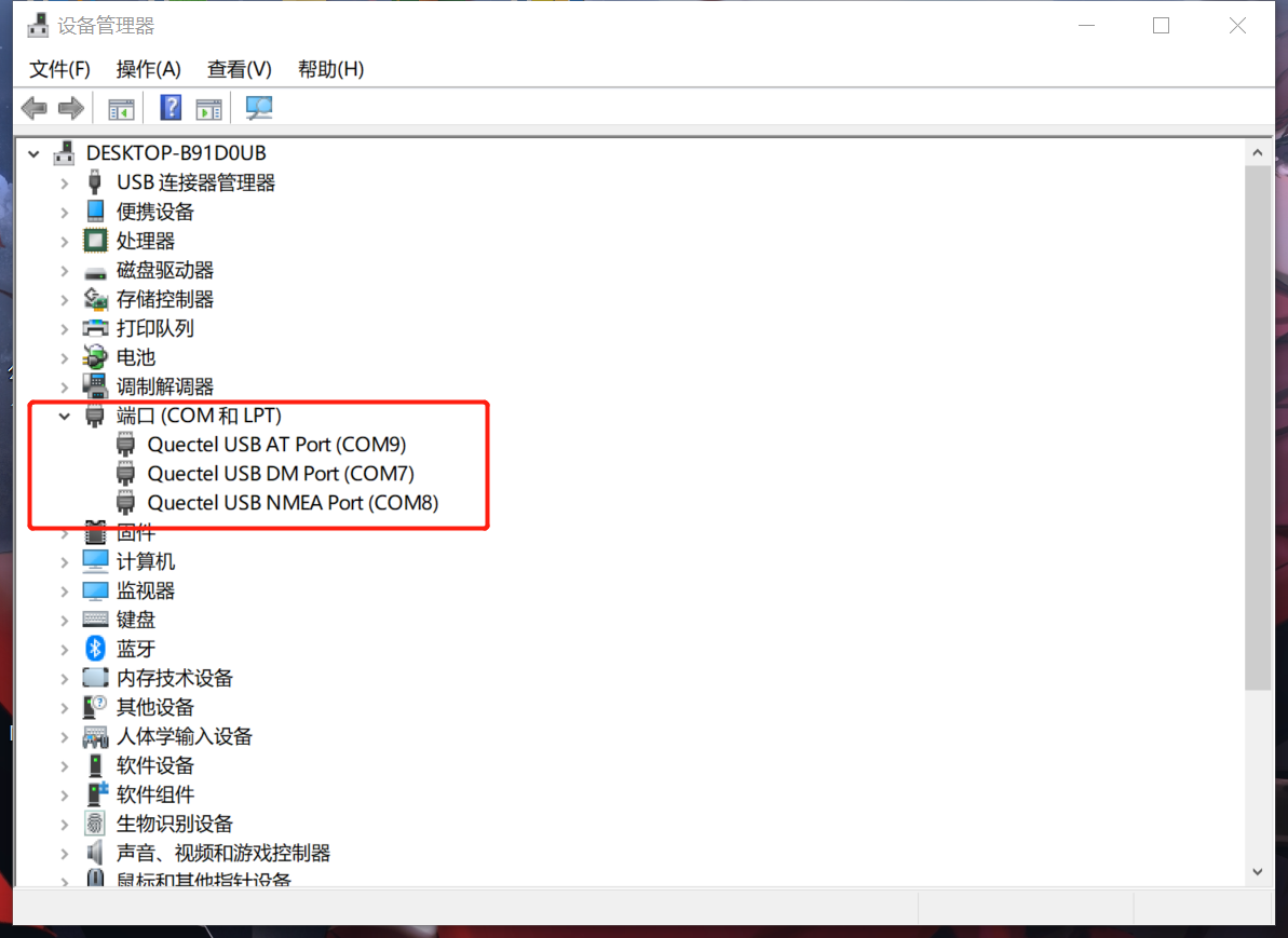 4、查看设备管理器-端口内是否有Quectel 端口