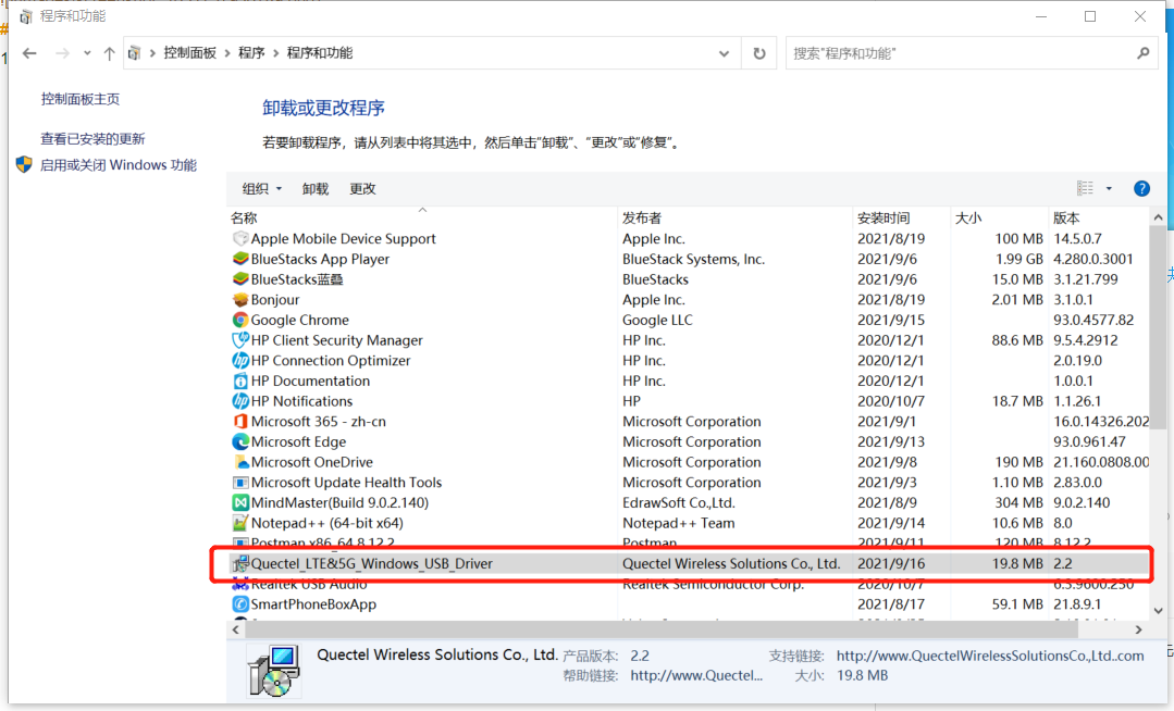 2、4G话机需要安装4G话机驱动,首先查看电脑的程序当中是否安装了4G话机驱动。