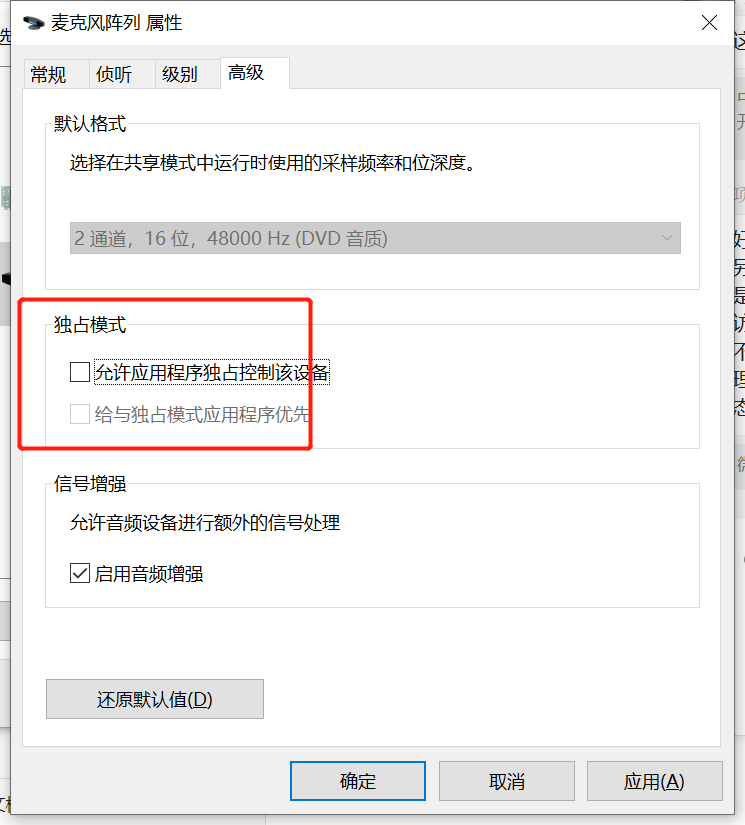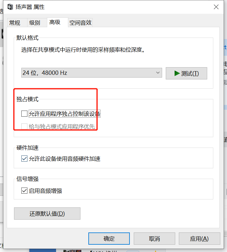 2、音频设置内取消独占勾选USB Audio Device并保存。