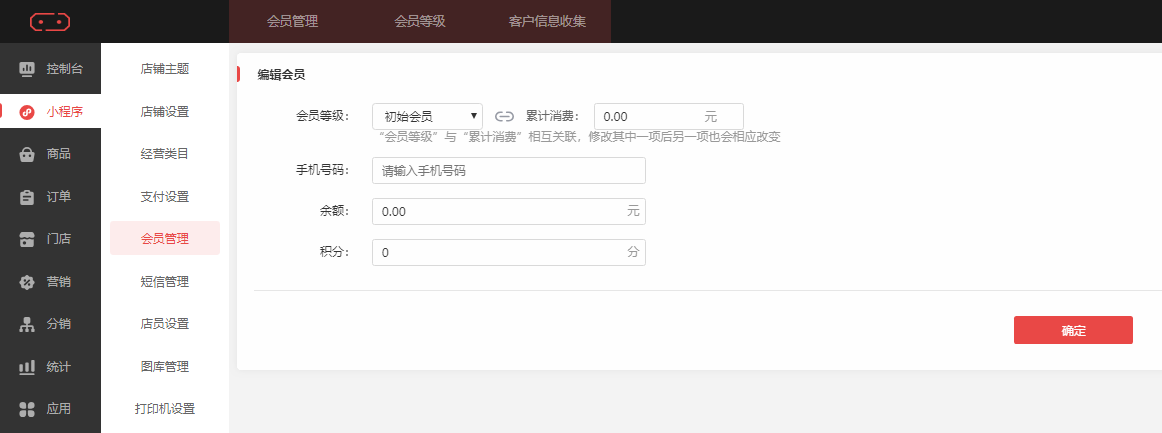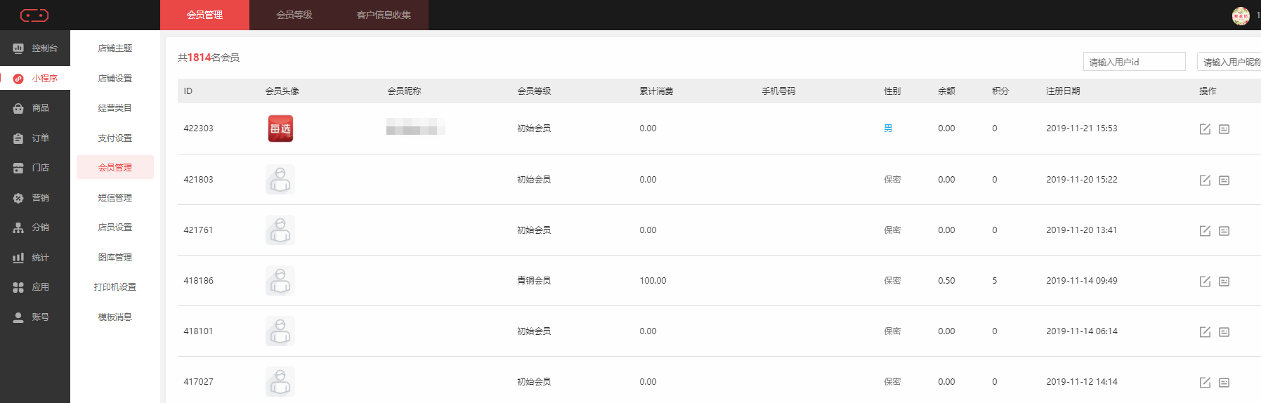 ### **6.小程序--会员管理(用户进入小程序,则自动成为小程序的会员)**