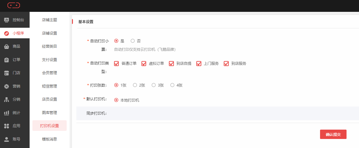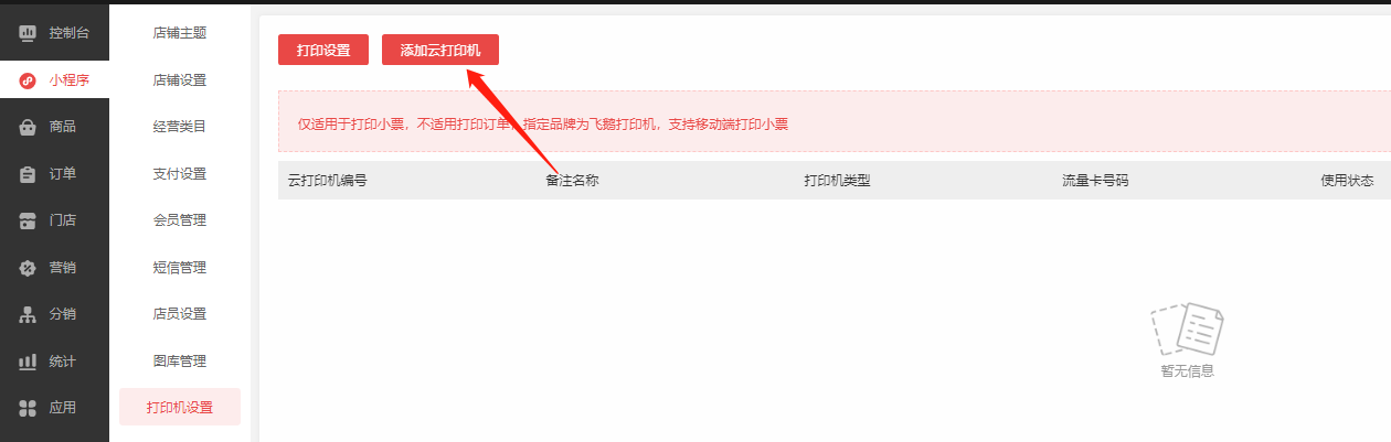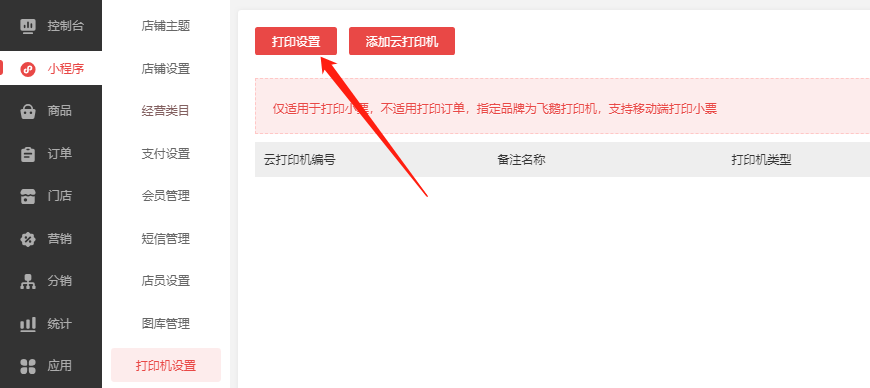### **12.小程序--打印机设置(仅适用于打印小票,不适用打印订单,支持移动端打印小票)**