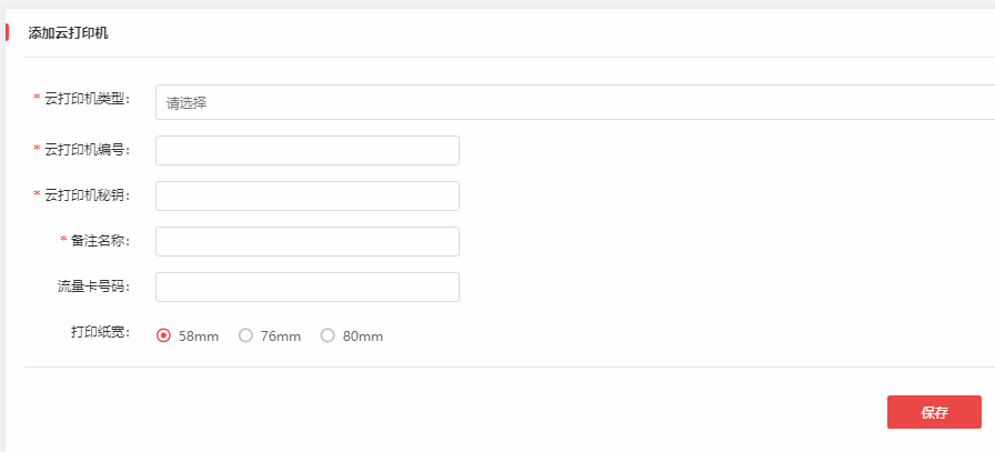 #### 添加云打印机,一个打印机只能绑定一个后台,打印机支持飞鹅云、飞猪云两种品牌的云打印机