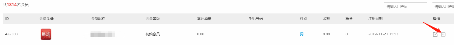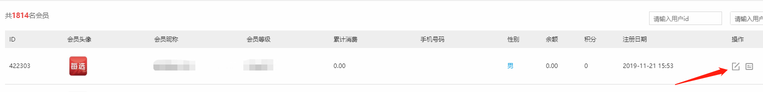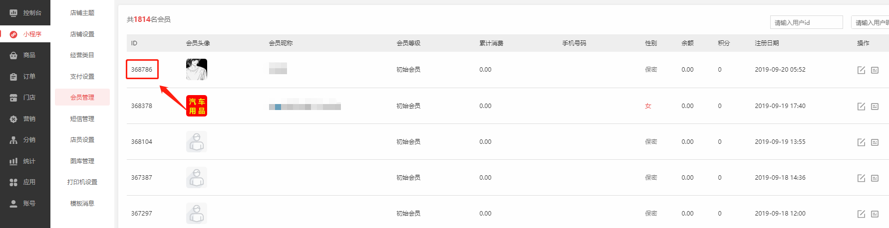 #### 新增商家的id:商家id需要从“小程序--会员管理--找到对应的会员查看他的id”