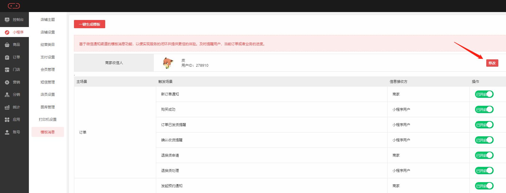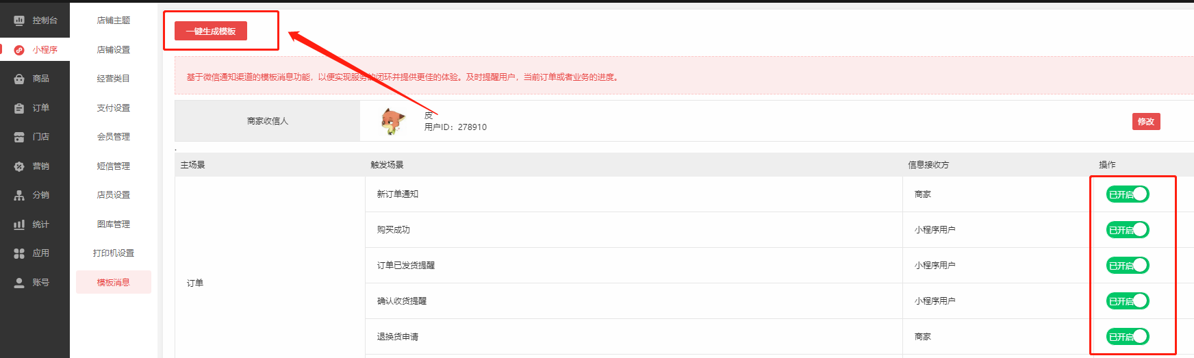 ### **13.小程序--模板消息(开启后商家和用户都可以收到服务通知)**