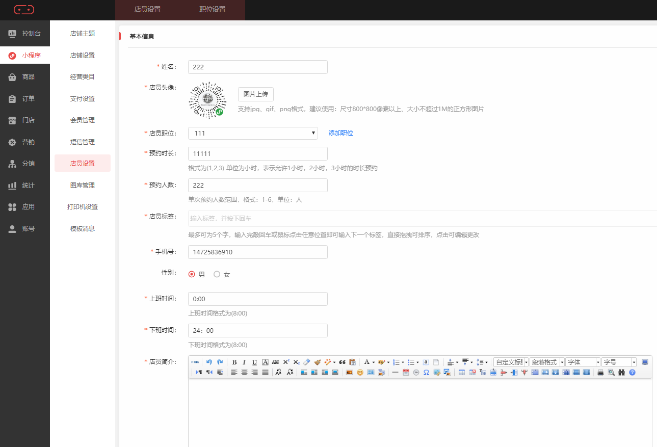 ### **9.小程序--店员管理--职位设置--添加职位(添加店员需要先添加职位)**
