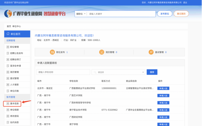 如果单位基本信息有变,可在单位中心,选择【基本信息】,如图: