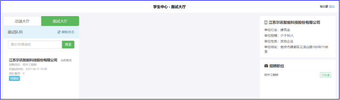 请学生在面试开始前10分钟,点击【洽谈面试大厅】,进行面试排队,如图: