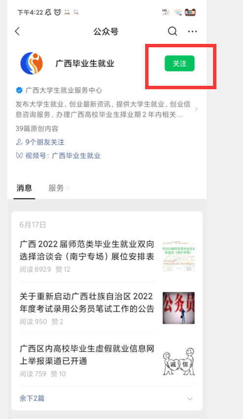 可以通过微信公众号搜索关注:【广西毕业生就业】